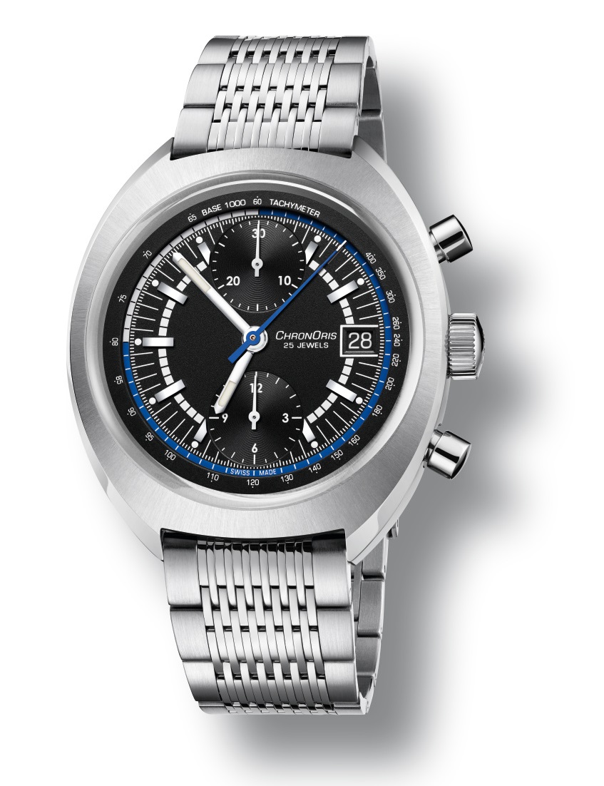 Базовый дизайн Chronoris в этом году был пересмотрен в соответствии с ожиданиями более молодых поклонников бренда, 40-миллиметровый стальной корпус часов водонепроницаем до 100 м, а внутри работает калибр Oris 673 (базовый — ETA 7750) с запасом хода в 48 часов.
