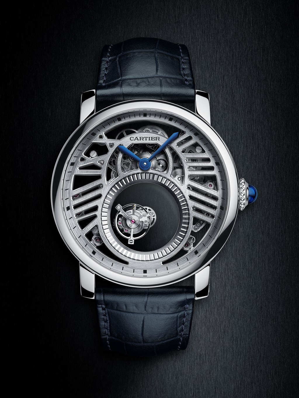 «Таинственный» двойной турбийон, созданный на мануфактуре в Ла Шо-де-Фон в 2013 году, стал важным этапом в истории часового производства Cartier — турбийон будто парит в воздухе, не соприкасаясь с другими деталями механизма.