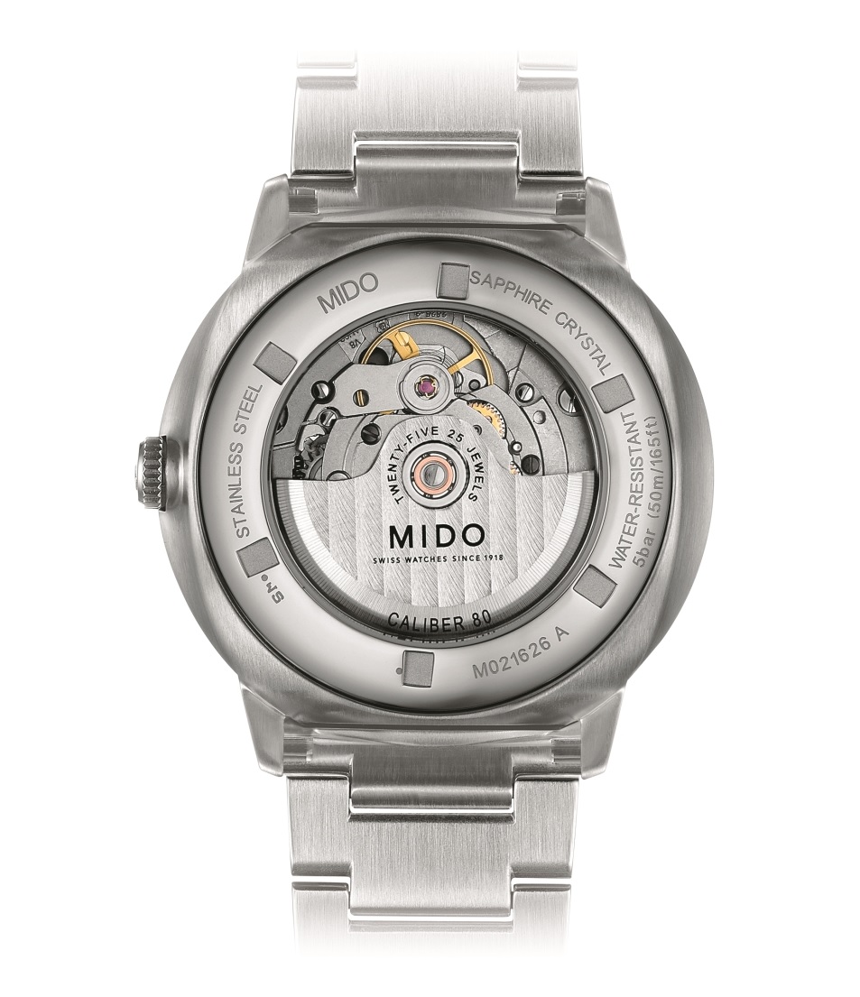 Модель оснащена автоматическим механизмом Mido Caliber 80, дополненным функцией «большой даты» — базовым калибром здесь выступает представитель семейства ETA CO7.ХХХ с 3-герцовым балансом и запасом хода в 80 часов, с 2013 года использующийся в часах представителей Swatch Group нижнего ценового сегмента (Tissot, Certina и др.).