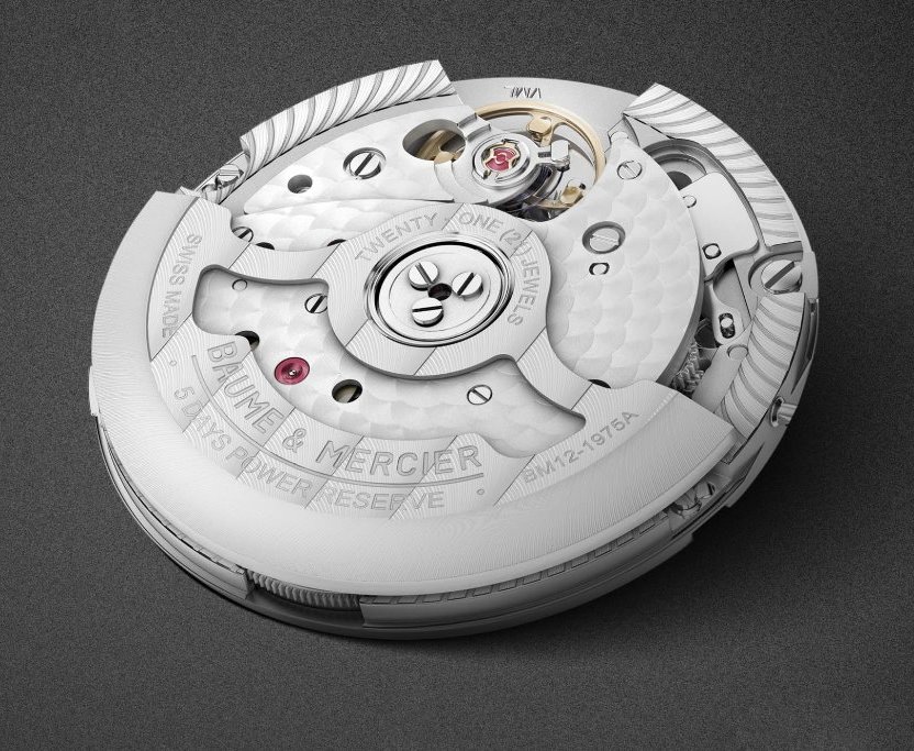 Центральная трехстрелочная индикация соседствует с окном даты в положении «3 часа» — все эти необходимые при ежедневном использовании часов функции обеспечиваются калибром Baumatic BM12-1975A с 4-герцовым балансом и запасом хода в 120 часов (5 дней) от одного заводного барабана.