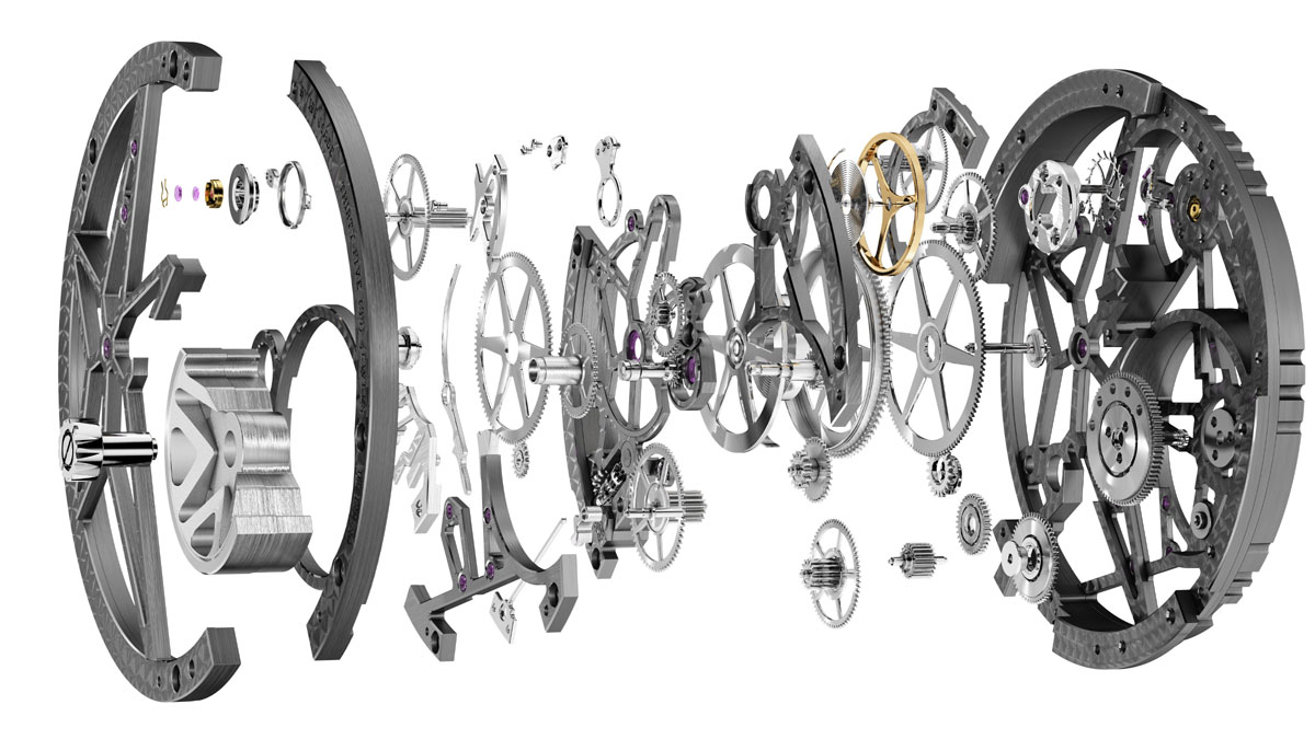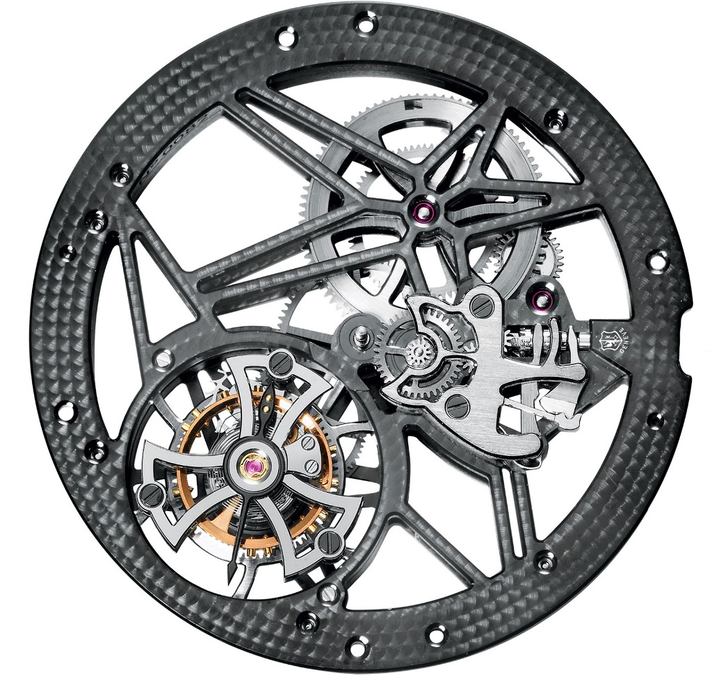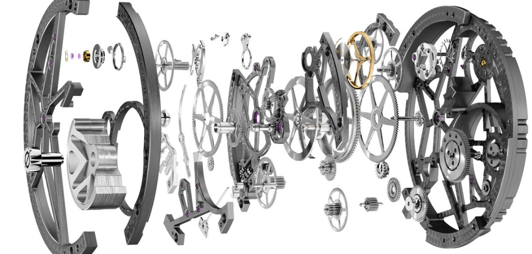 Если все твои механизмы соответствуют требованиям Женевского клейма (Poinçon de Genève), то зачем прятать такую красоту от людей — считают в компании Roger Dubuis. И предлагают в качестве дальнейшего развития коллекции Excalibur Skeleton две новые модели, премьерный показ которых состоится в рамках женевского салона SIHH-2015. Механизмы часов максимально высвобождены от лишнего металла на платинах и мостах, оставшийся же элементы скелетной структуры получили родиевое покрытие угольно-серого цвета, жемчужную фактурную шлифовку и качественное фацетирование граней. Более того, даже заводные барабаны не являются препятствием для проникновения солнечного света.