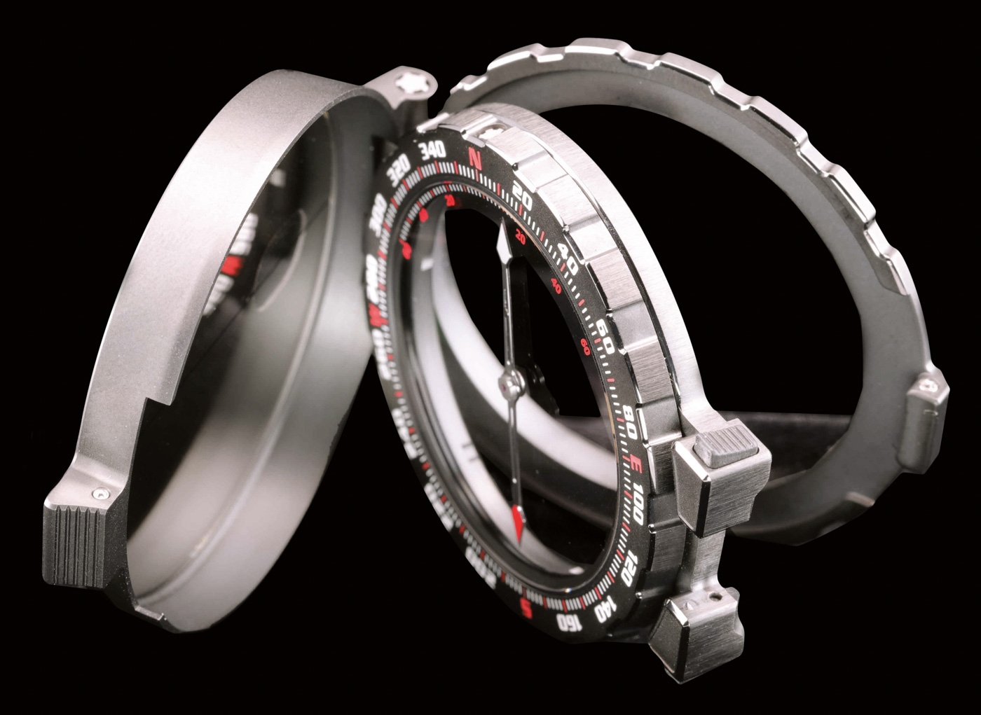 Конструкция модели позволяет производить смену безелей — более простой двунаправленный за счет байонетного соединения меняется на более сложный, с компасом и откидывающейся верхней крышкой, внутренняя сторона которой отполирована до зеркальной поверхности.