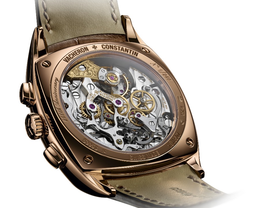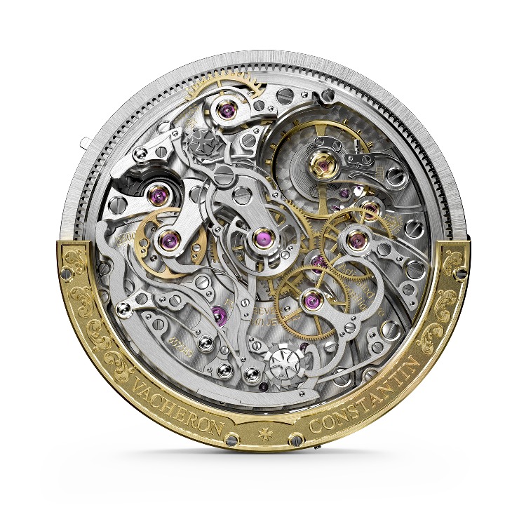 Нельзя не упомянуть о высоком уровне финишной отделки и декорирования, традиционно для Vacheron Constantin соответствующих требованиям Женевского клейма. Помимо этого, золотой мост баланса украшен гравировкой в виде цветочного мотива fleurisanne engraving, которым были оформлены старинные карманные часы, подписанные Жаном-Марком Вашероном в 1755 году. Примечательно выглядят колеса хронографа и винт крепления колонного колеса, стилизованные в виде эмблемы женевской марки — мальтийского креста.