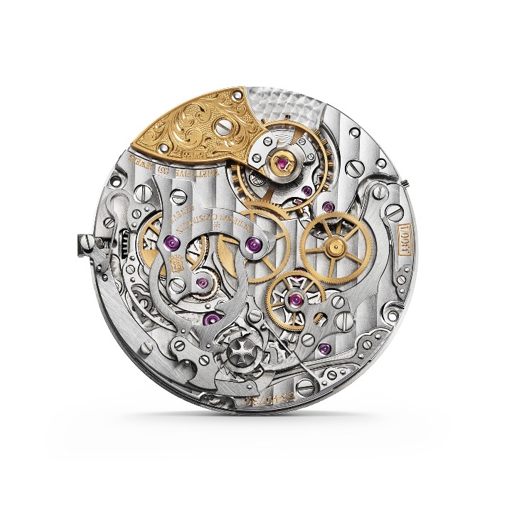 Прозрачное сапфировое окно задней крышки и Calibre 1142 (27.5 x 5.57 мм, частота баланса — 21’600 пк/ч, запас хода — около 48 ч)
