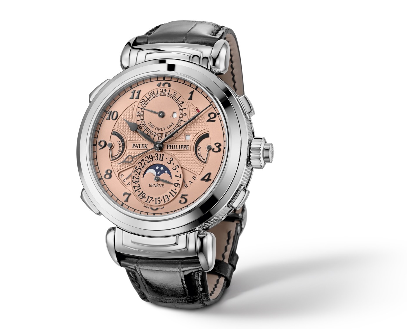 Помимо стального корпуса диаметром 47.7 мм и толщиной 16.07 мм, модель за референцией 6300A-010 выделяется циферблатами цвета розового золота и черного дерева (оборотная сторона), а также надписью «The Only One» на дополнительном циферблате будильника в положении «12 часов», которая является еще одной печатью эксклюзивности.