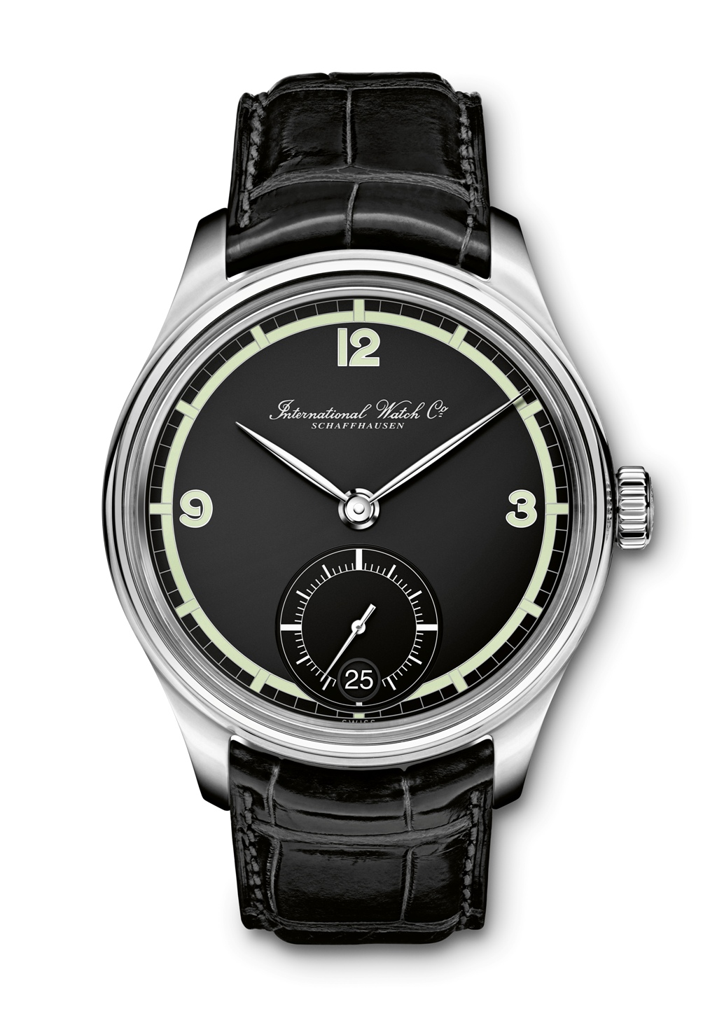 Уже знакомый нашим читателям «португалец» с годовым календарем, особенность которого — в ежегодной корректировке показаний в последних числах февраля, начале марта. Данные календаря считываются посредством трех полукруглых окон в положении «12 часов» с указанием месяца, даты и дня недели — в «американском» формате. Это обусловлено не только конструктивными особенностями механизма, но и отдает дань уважения основателю IWC, Флорентину Ариосто Джонсу — гражданину США.