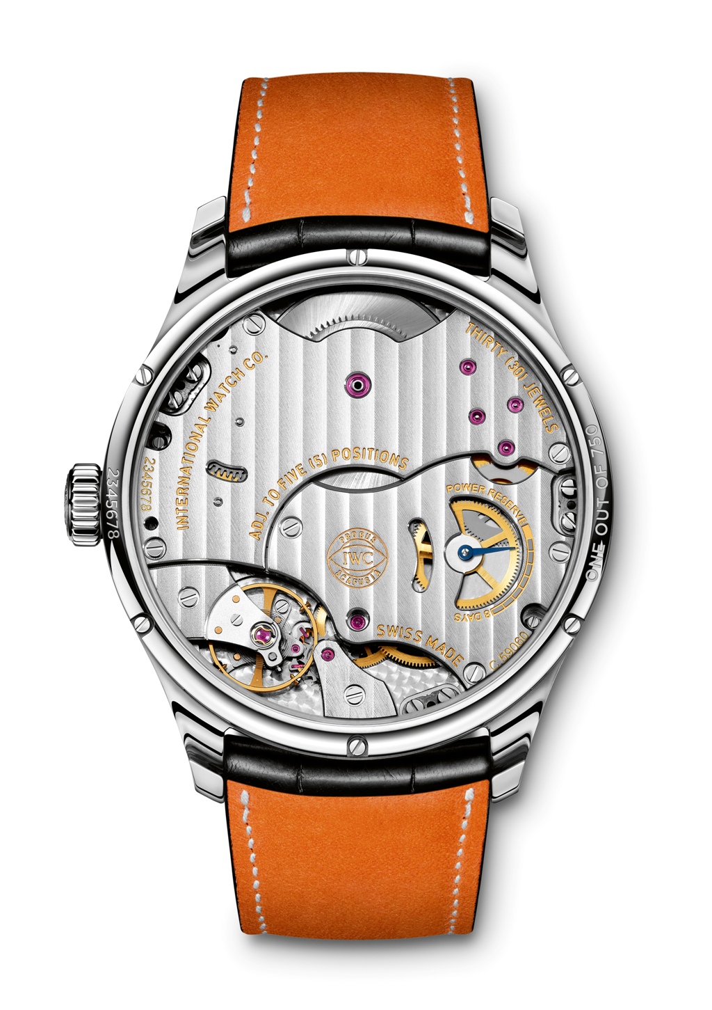 Часы созданы в память о почти забытой версии старых «португальцев», единственный сохранившийся в частной коллекции экземпляр которых послужил источником вдохновения для дизайнеров марки. В них сосредоточены качества, являющиеся визитной карточкой коллекции Portugieser и в наши дни: арабские цифры, тонкие стрелки, минутная шкала в «железнодорожном» стиле и малая секундная стрелка у отметки «6 часов». Вместе с тем, индикатор даты в круглом окошке гармонично дополняет образ и предоставляет удобный каждодневный функционал. А вот 8-дневный указатель запаса хода из уважения к историческому наследию решили разместить на обратной стороне механизма, который доступен для наблюдения через сапфировое окно задней крышки корпуса.