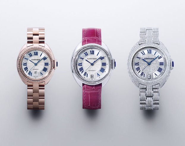 Clé de Cartier, женские модели в корпусах из розового (диаметр — 31 мм) и белого золота (диаметр — 35 мм) с бриллиантами