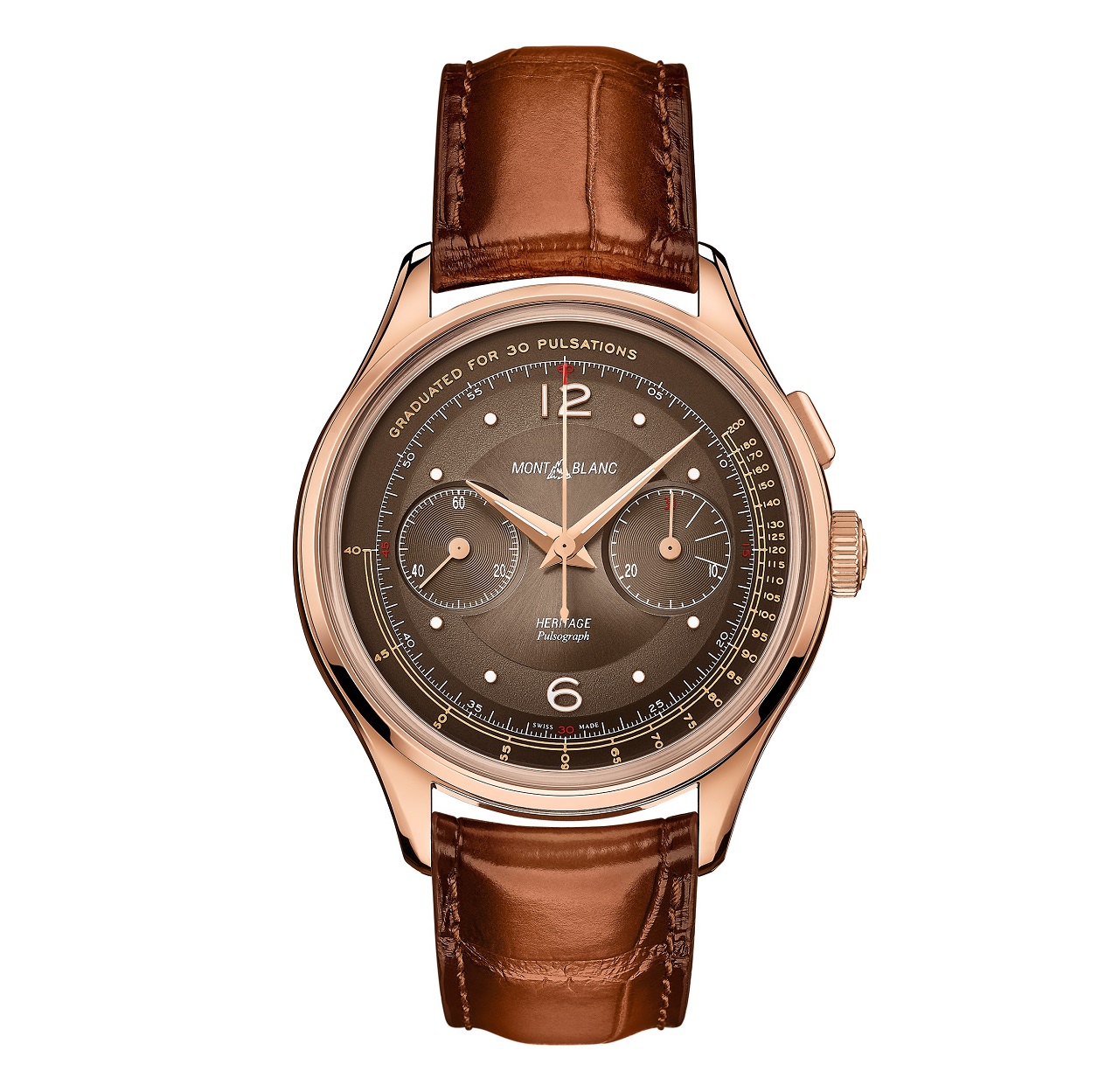 Наконец, наиболее престижной в данной компании позиционируется модель Heritage Manufacture Pulsograph, оформленная в формате ограниченной 100 экземплярами серии в 40-миллиметровом корпусе из розового золота 18К в сочетании с патинированным табачно-коричневым циферблатом и подходящим по цвету ремешком из кожи аллигатора с эффектом сфумато.