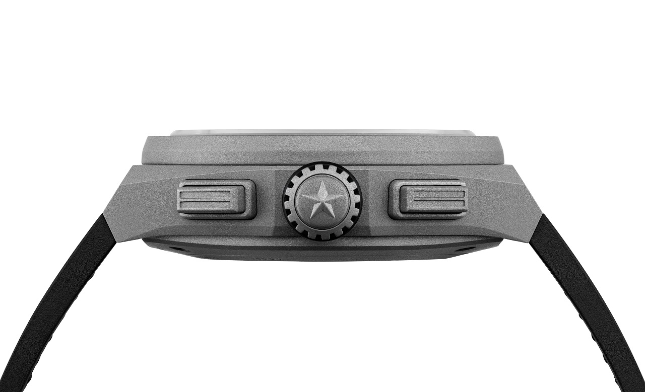 Некоторое отличие в дизайне лицевой стороны новинки кроется в том, что теперь компанию ступенчатому фланцу с накладными часовыми метками и минутной шкалой составляют не скелетонизированные, а сплошные диски малых циферблатов серого цвета.