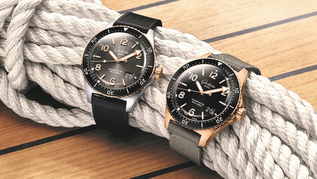 Саксонская марка продолжает развитие представленной в прошлом году спортивной коллекции Spezialist, самое свежее пополнение которой состоялось благодаря двум новым версиям модели SeaQ Panorama Date, что к уже имеющемуся чисто стальному варианту получила биколорное, а также полностью золотое исполнение.