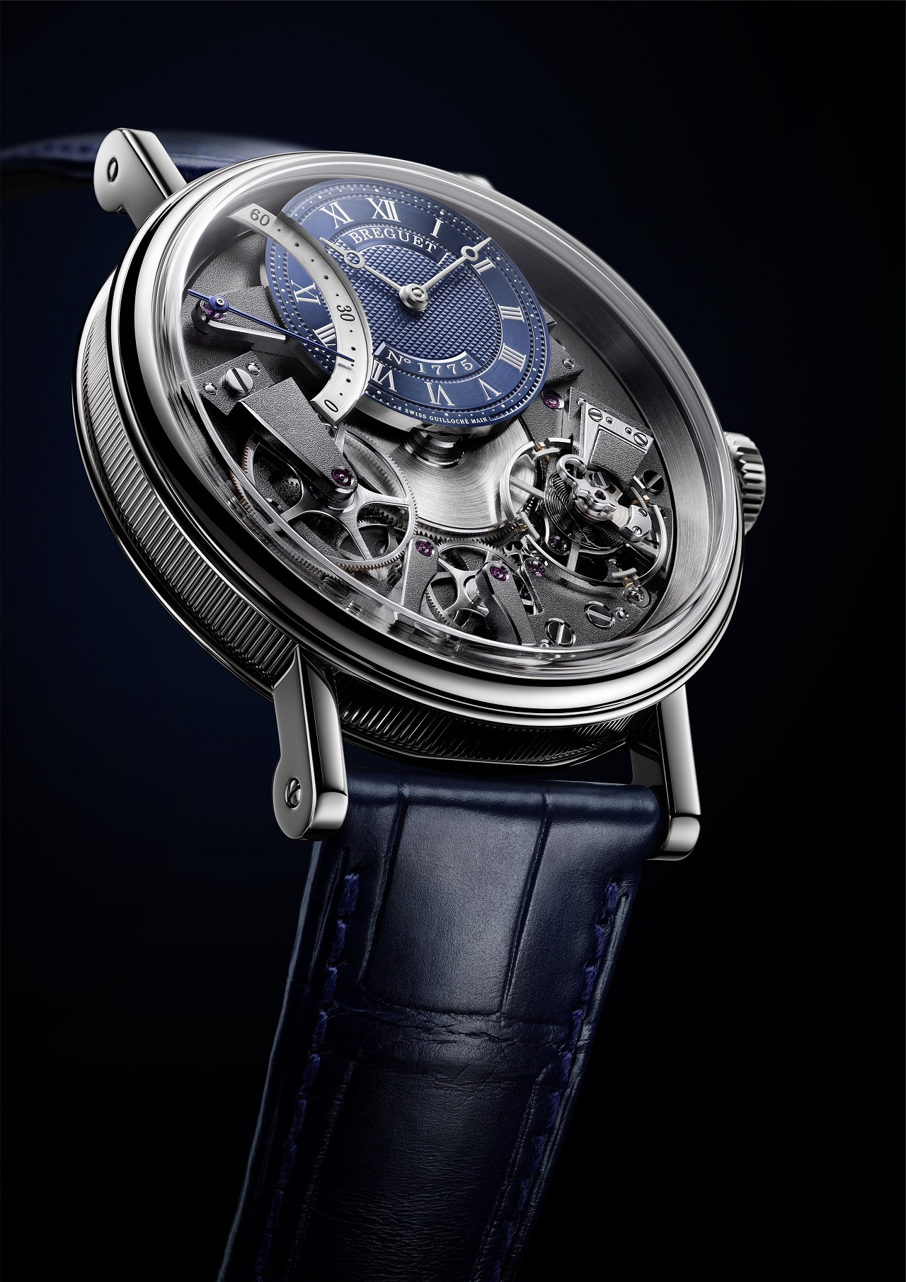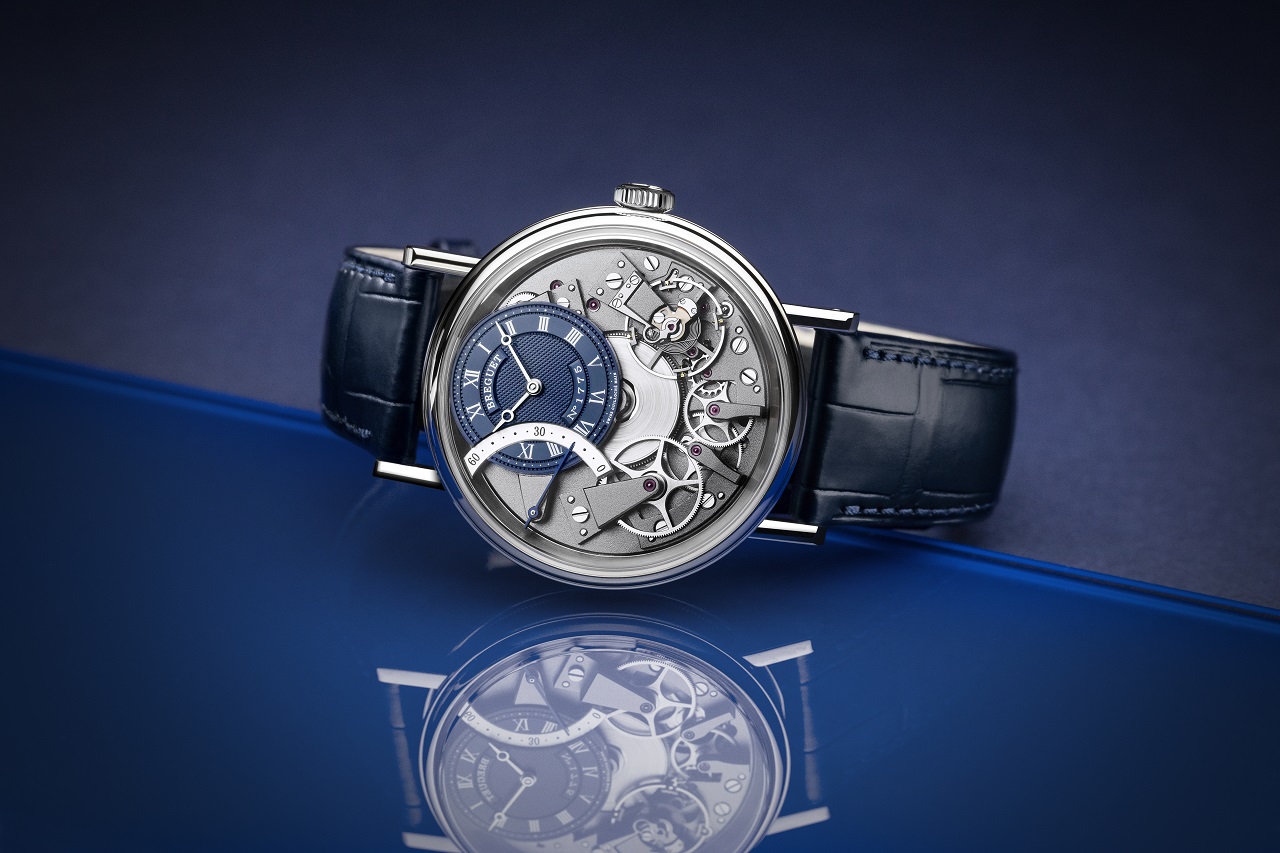 При этом мост баланса, расположившийся в положении «4 часа», дополнен противоударным устройством «pare-chute», изобретенным А.-Л. Бреге для защиты оси баланса от ударов и ставшим фирменной чертой коллекции Tradition.