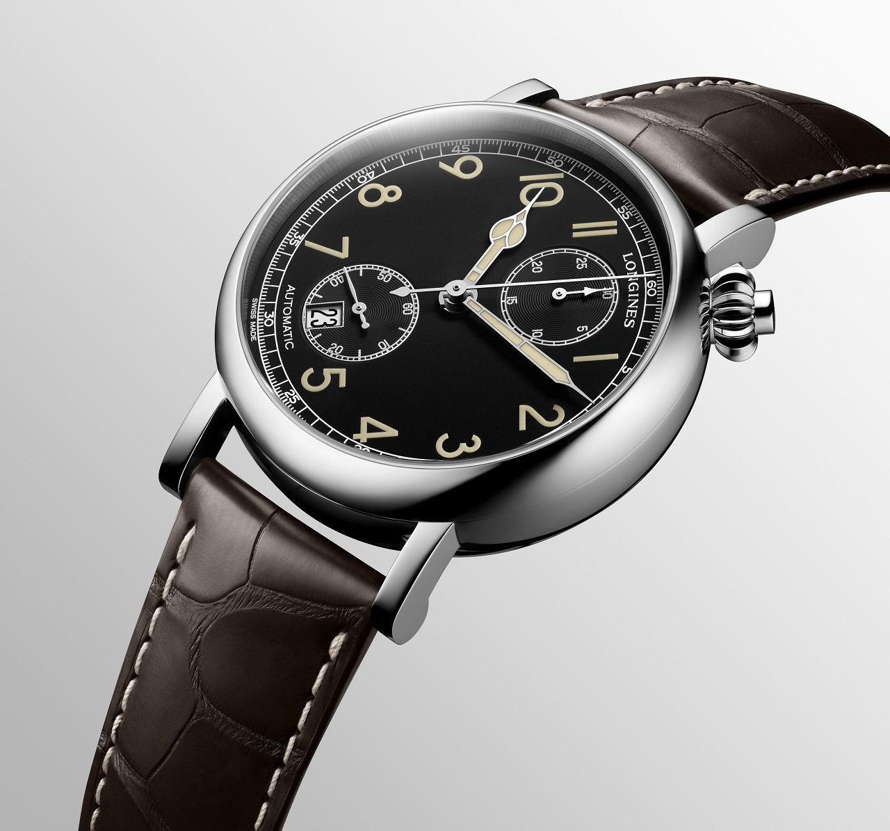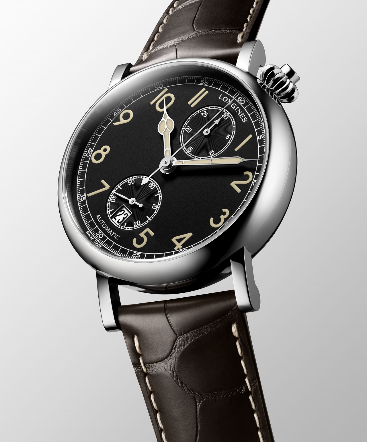 Стальной корпус диаметром 41 мм и толщиной 14.3 мм (WR 30 м) изменений не претерпел, он по-прежнему оснащается глухой задней крышкой с гравированным изображением аэроплана вековой давности, а в компании с ним находится коричневый ремешок из кожи аллигатора с контрастной бежевой прострочкой.