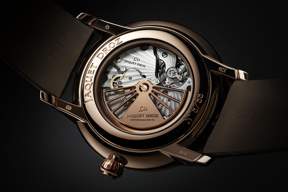 Часы Jaquet Droz Grande Seconde Deadbeat будут выпущены ограниченной серией из 88 штук. Порядковый номер изделия можно отследить как по гравировке на задней крышке корпуса, так и на внешнем секторе циферблата между метками «9» и «11 часов».