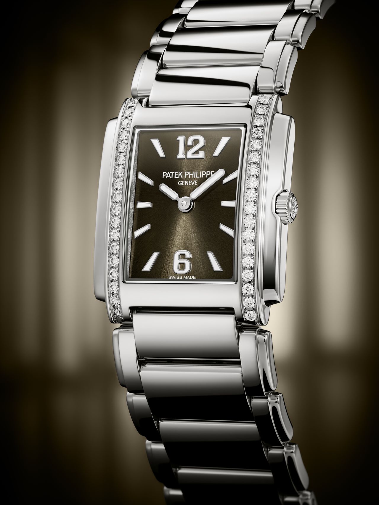 Две новые референции, 4910/1200А-001 и 4910/1200А-010, выполнены в корпусе «манжетного» силуэта, из нержавеющей стали и в историческом размере 25.1 х 30 мм, где в качестве обязательного элемента декорации выступают два ряда бриллиантов традиционной огранки (по 18 камней категории Top Wesselton с каждой стороны, общим весом 0.42 карат).