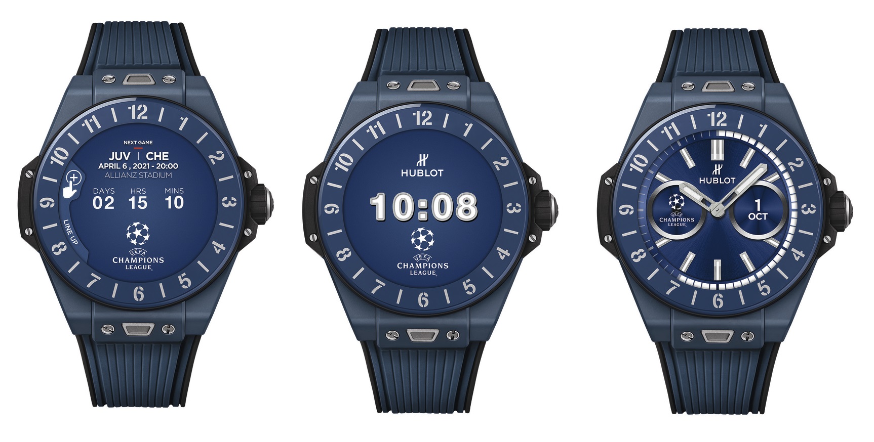 К старту нового сезона Лиги Чемпионов УЕФА марка из Ньона подготовила ограниченную 500 экземплярами серию представленных ранее смарт-часов Big Bang e connected, оформив издание в фирменных цветах престижного футбольного турнира и предложив специальное приложение Hublot Loves Football UEFA Champions League.