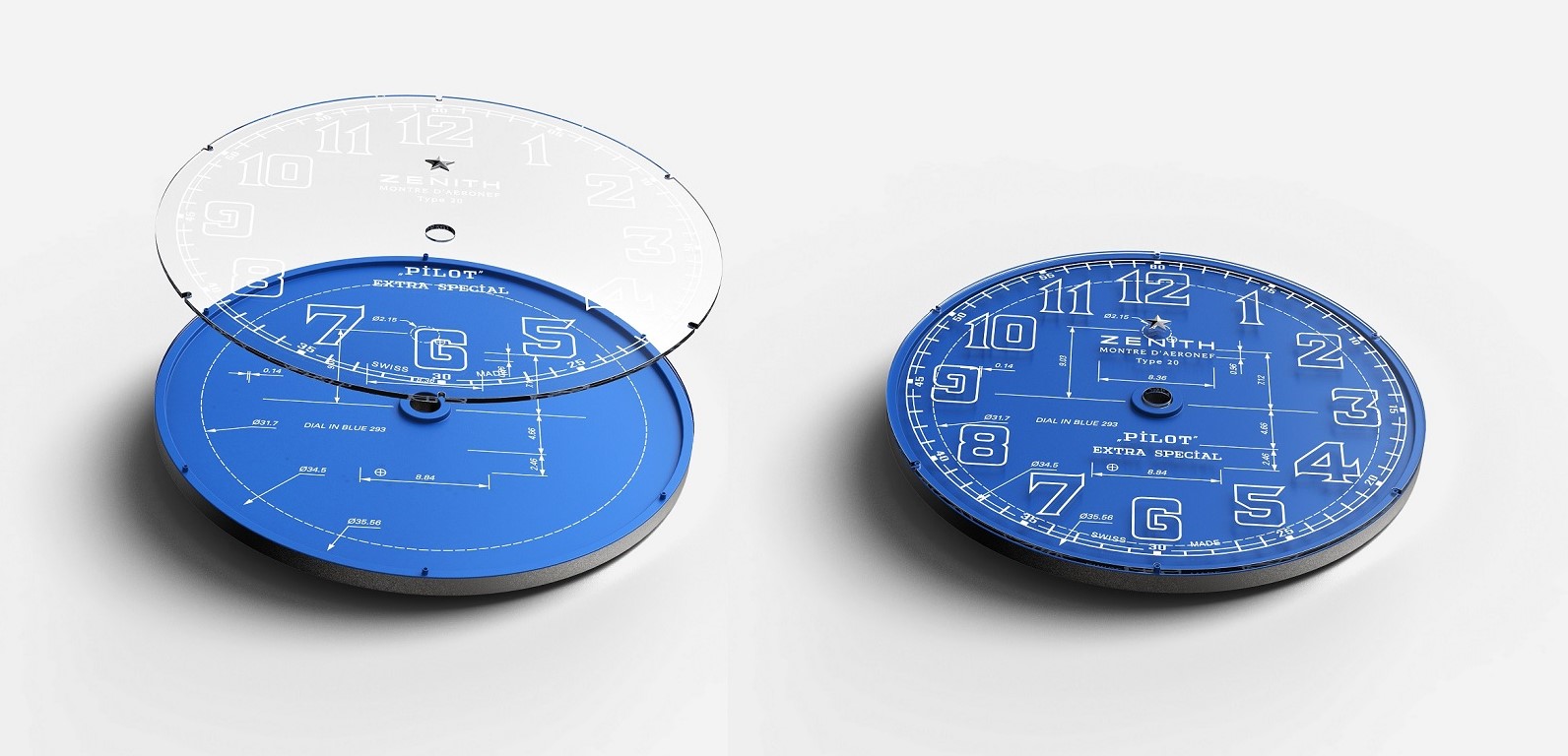 В новой модели специалисты из Ле Локля стремились подчеркнуть «невидимый» процесс, стоящий за созданием лицевой детали часов, и приняли решение вынести чертежи непосредственно на циферблат, который состоит из двух частей: синего матового основания с нанесенными на него техническими чертежами и примечаниями и двойного сапфирового стекла с часовыми индексами и логотипом бренда.
