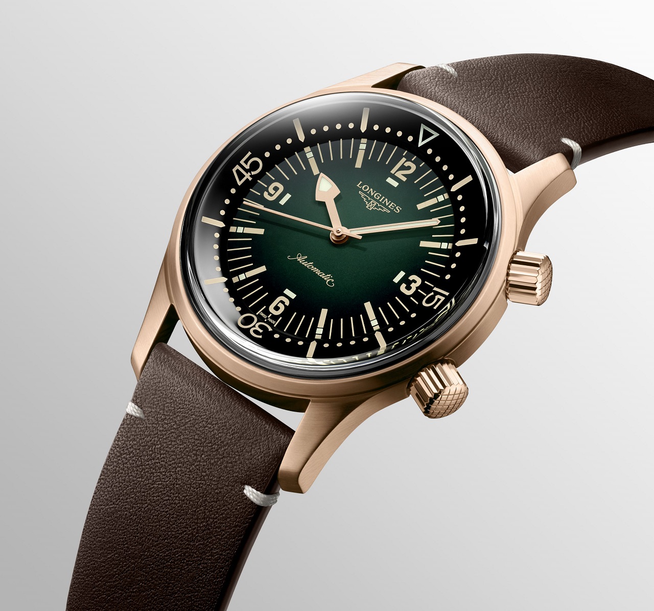 Прекрасный подарок поклонникам дайверской модели Legend Diver преподнесли в Сент-Имье, дополнив существующую коллекцию версией в бронзовом корпусе, что служит достойным обрамлением для зеленого циферблата с градиентным изменением цвета от его центра к периферии.
