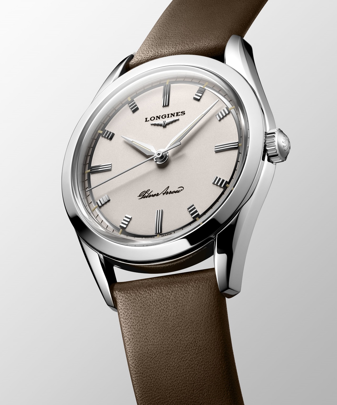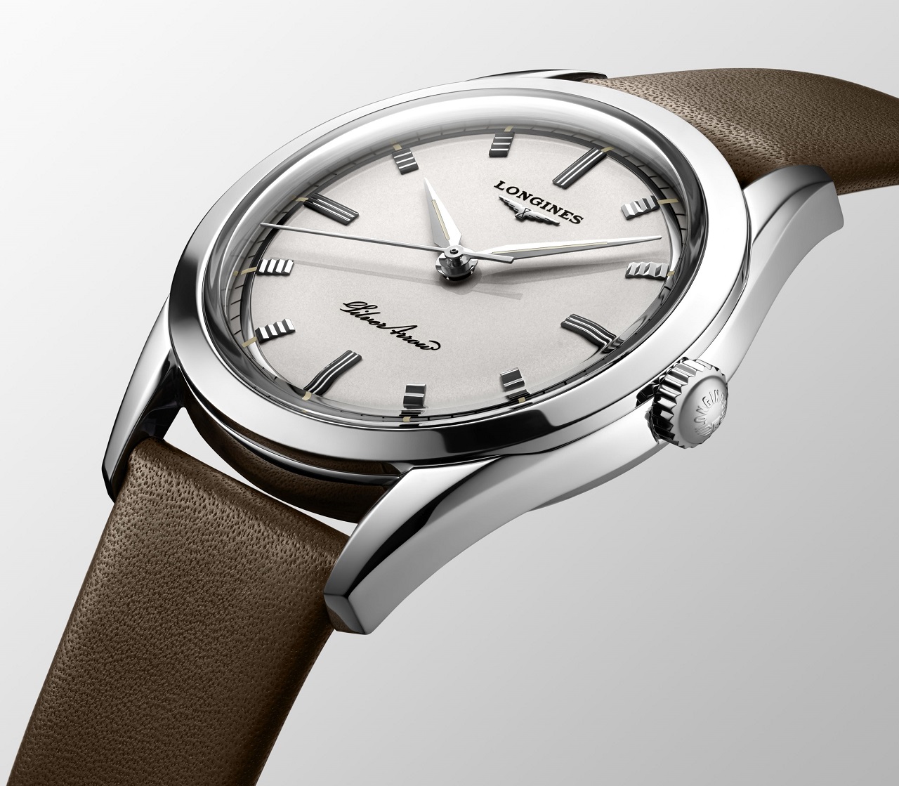 История модели Silver Arrow, переиздание которой пополнило современную коллекцию Heritage, берет начало в 1955 году и связана с названием, победившим во внутрифабричном конкурсе Longines на выбор лучшего имени для авангардных часов, вышедших из стен компании годом позднее.