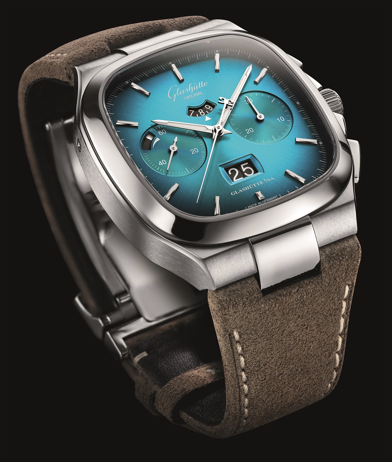 Мануфактура, расположенная у подножия Саксонских Рудных гор, порадовала своих почитателей двумя новыми версиями хронографа с большой датой из винтажной коллекции Seventies, безусловным украшением которых в очередной раз стали фирменные цветные циферблаты, изготовленные на собственной фабрике в Пфорцхайме.