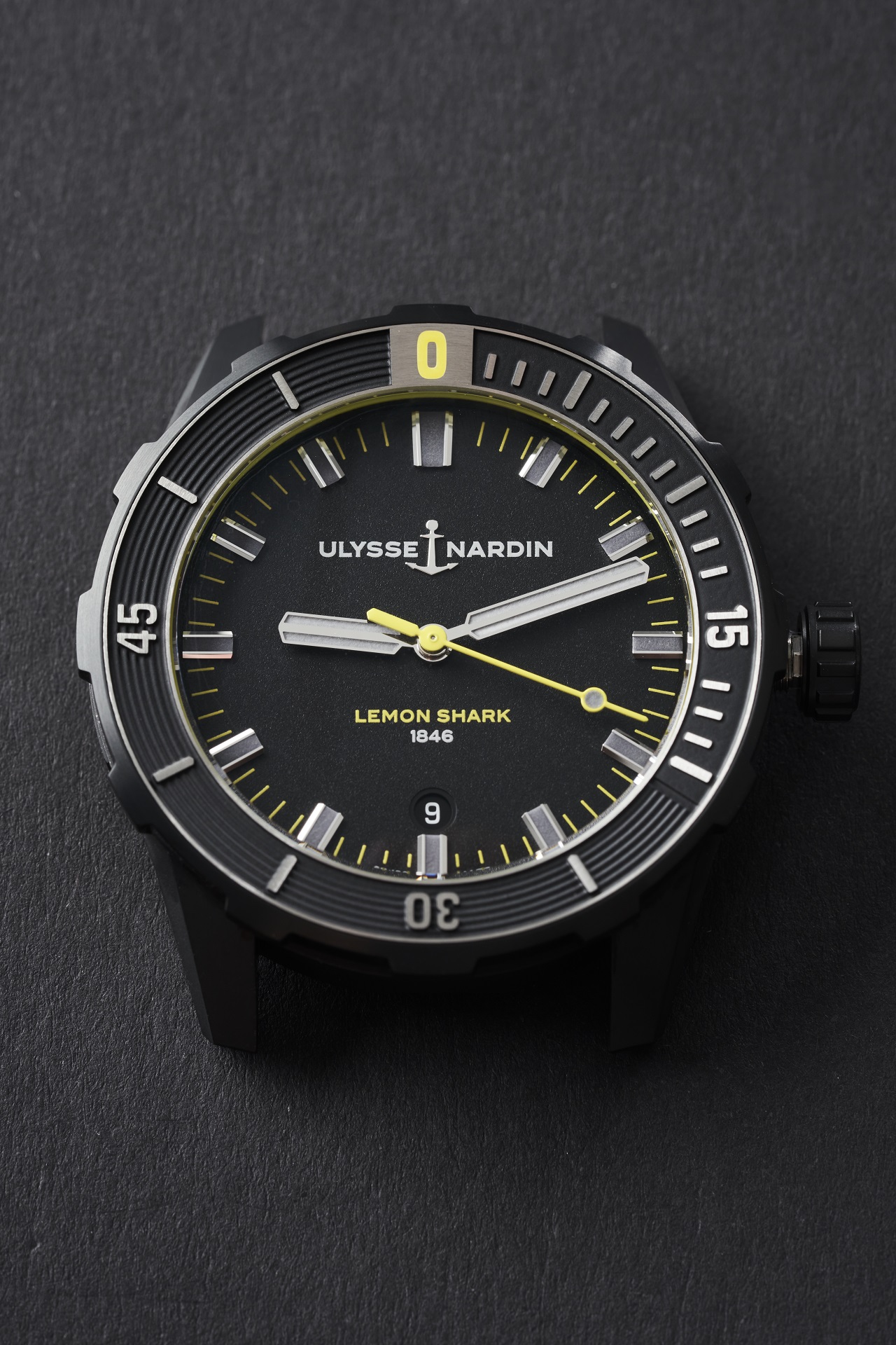 Данный оттенок символизирует связь новых часов с океаном и созвучен окрасу лимонной акулы, три представителя которой представлены на задней крышке корпуса в виде рельефного изображения.