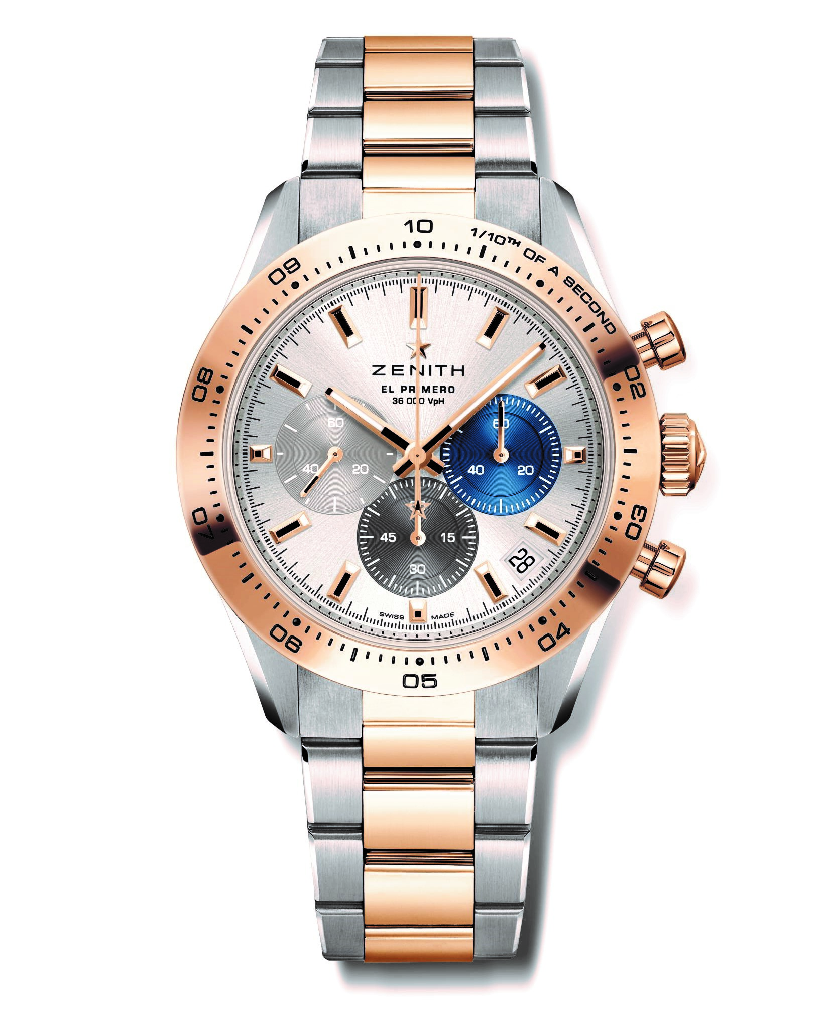 В первую очередь на себя обращают внимание полностью золотые версии (включая безель и трехрядный браслет с комбинированной отделкой) исполнения модели, в оснащение которых входят черный лакированный либо белый матовый циферблаты, непременным атрибутом которых являются три цветных субдайла, выдержанные в соответствии с цветовой схемой исторических El Primero А386 1969 года.