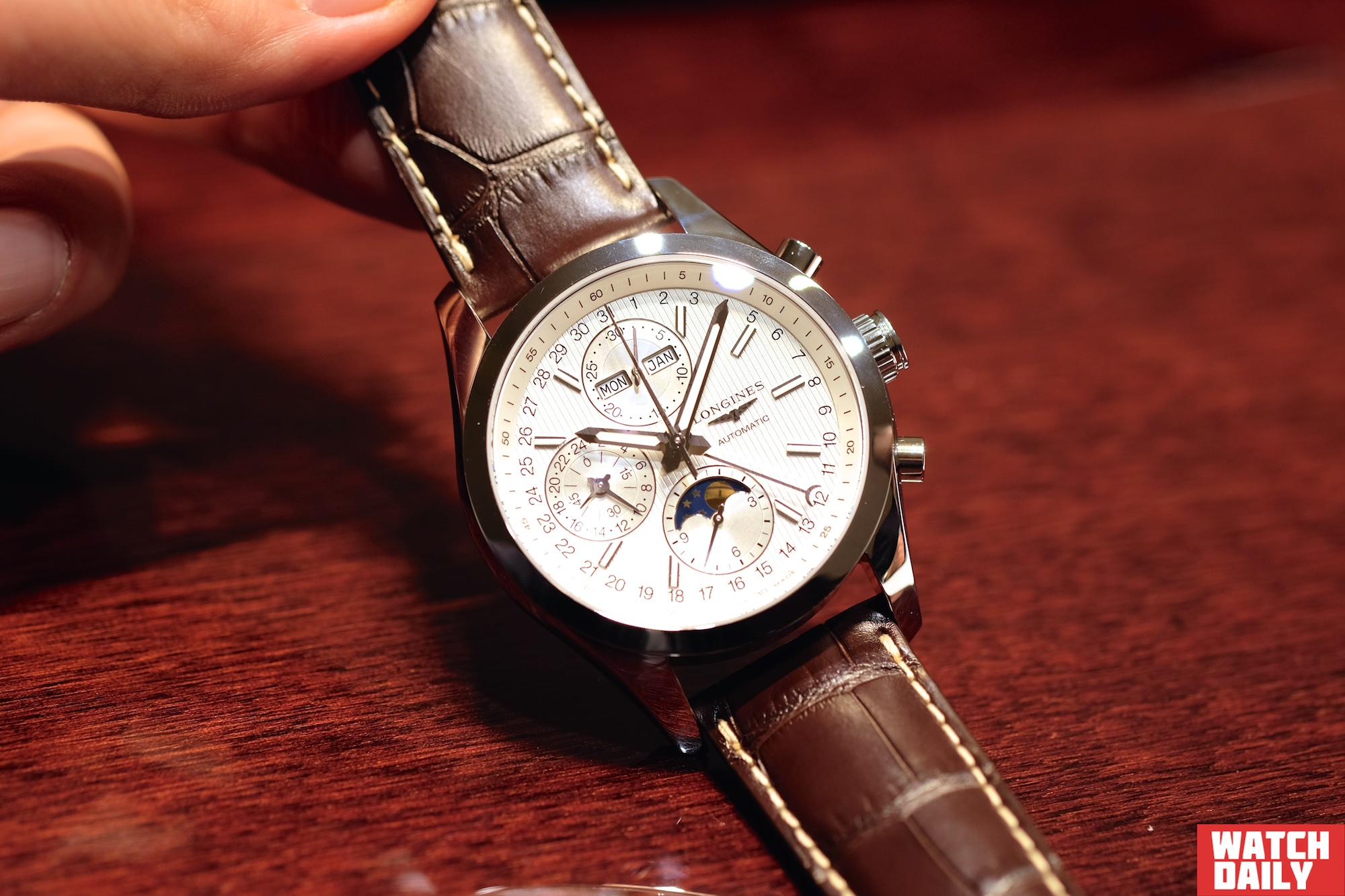 Завершает обзор новая интерпретация часов с хронографом и полным календарем с указателем лунных фаз, за механическую часть которых отвечает популярный механизм ETA/Valjoux 7751 или L678 (13¼ линий, 25 камней, 28’800 пк/ч, запас хода — 48 ч) по классификации Longines.