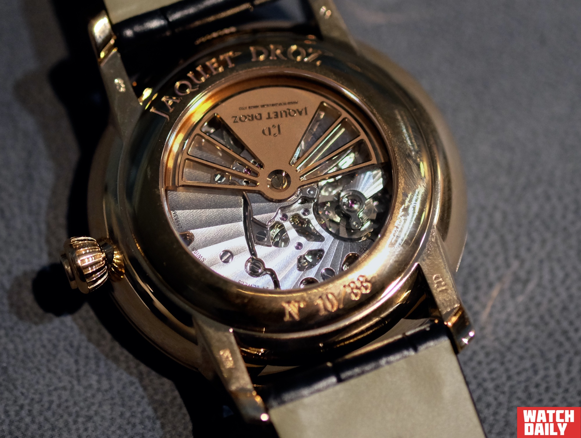 Марка Jaquet Droz, пожалуй, как никакая другая, особенно сильна в декоративном искусстве, активно экспериментируя с новыми техниками изготовления циферблатов, не забывая и о старых, в частности, различными проявлениями эмальерного искусства. Впрочем, BaselWorld-2015 не оказался обделен и весьма любопытными решениями в области часовой механики.