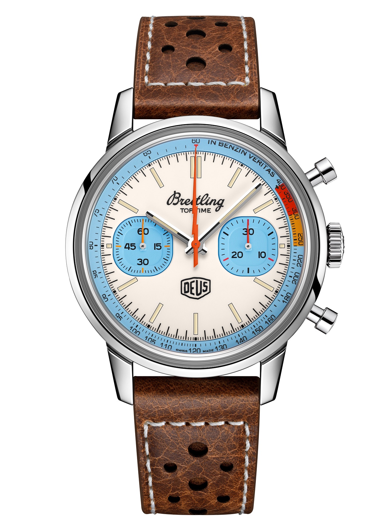 Впрочем, модель сохранила как характерную оранжевую секундную стрелку в форме молнии, логотип Deus и его слоган «In benzin veritas», так и рельефное изображение мотоциклиста, придуманное креативным директором Deus Керби Такуэллом и запечатленное на задней крышке корпуса часов.