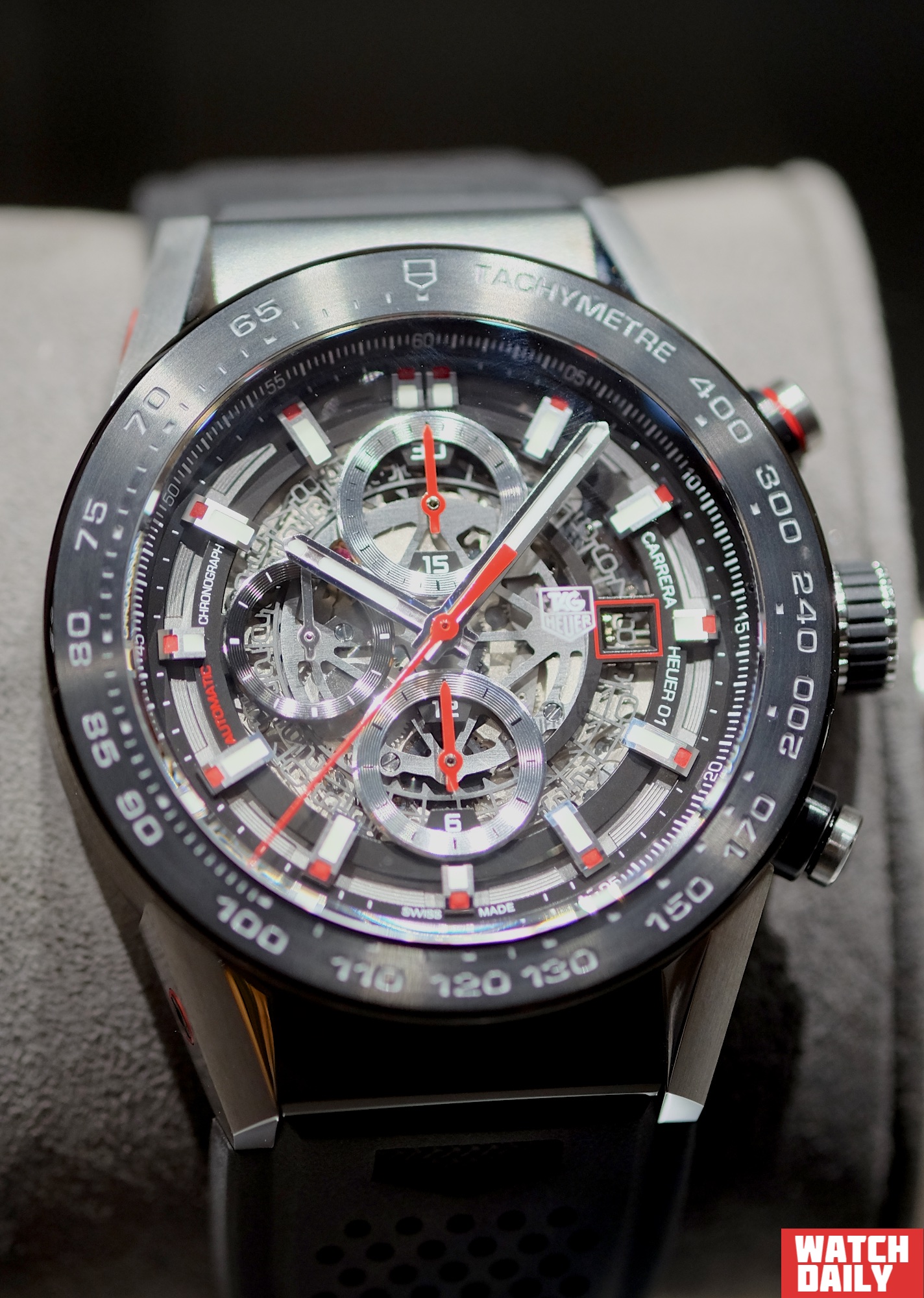 Часы TAG Heuer Carrera — Heuer 01 являются родоначальниками новой коллекции, что воплощено в новом корпусе, новом дизайне и новом механизме Heuer 01. Последний стал результатом модернизации автоматического калибра 1887, хронографа с колонным колесом.