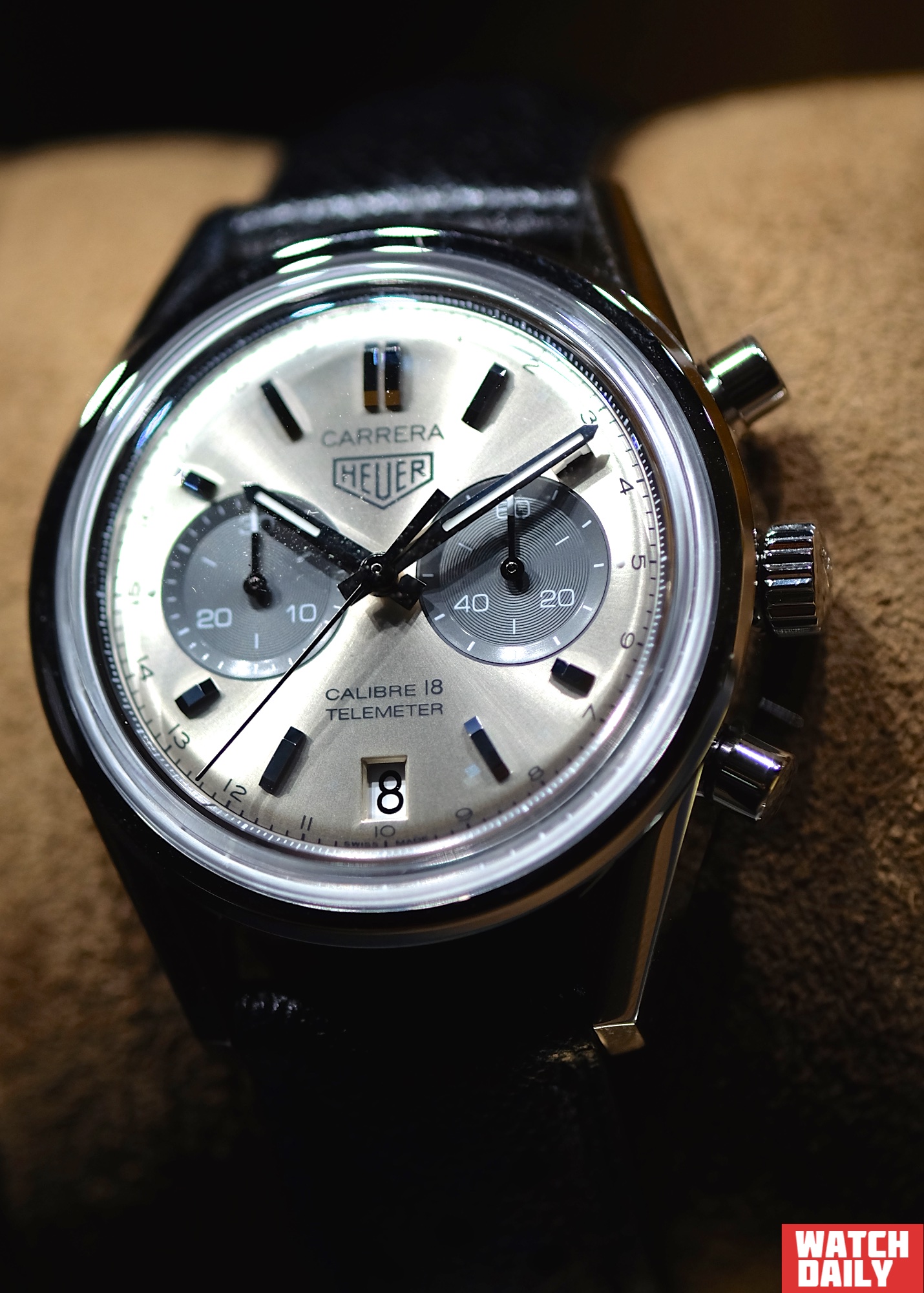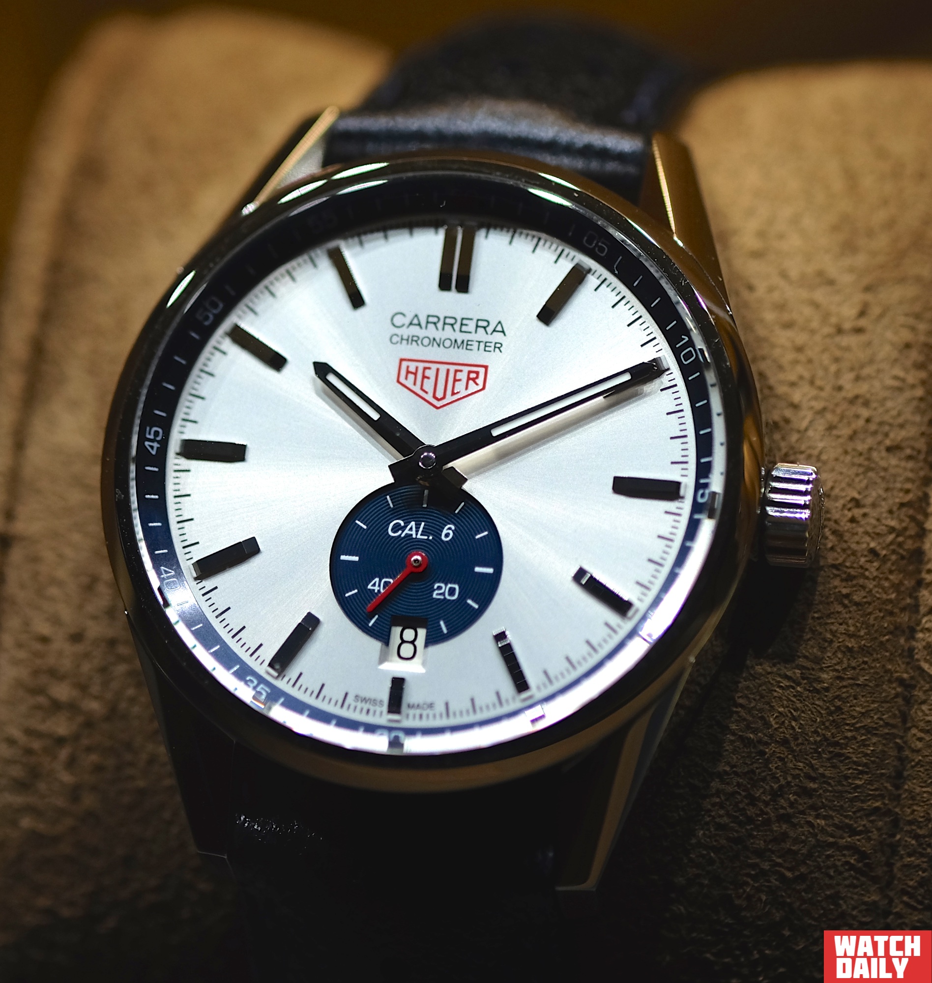 Похожим образом изменились и две модели в классической линии Carrera с историческим логотипом Heuer — Calibre 6 и Calibre 18 Chronographe. Обе они используют контрастное цветовое решение типа «панда», при котором цвет малого циферблата отличается от цвета циферблата основного. Младшая модель удостоилась звания «хронометр».
