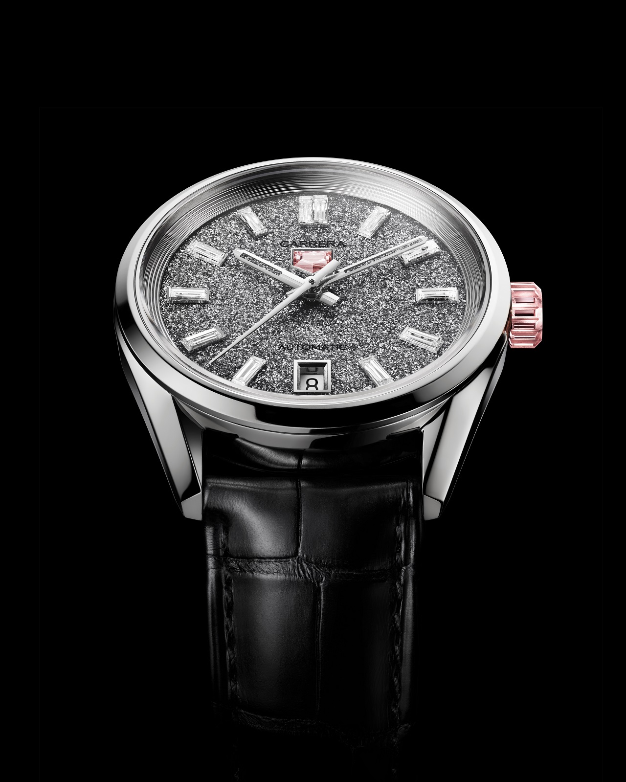 Фирменная технология Diamant d’Avant-Garde, специализированная для выращивания лабораторных алмазов и задействованная в производстве прошлогоднего 44-миллиметрового хронографа Carrera, дает жизнь первому прототипу уменьшенного формата, где впервые в своей истории часовая марка из Ла Шо-де-Фон использует цветные алмазы.