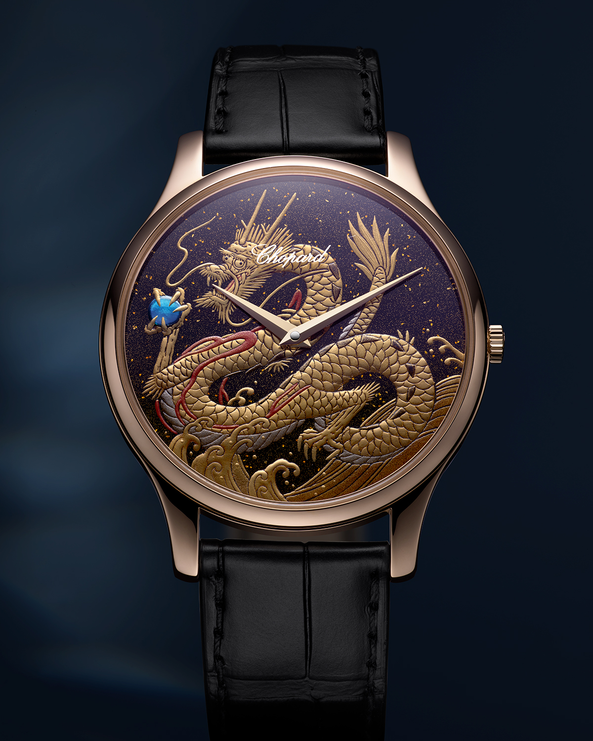 Восемьдесят восемь циферблатов (по числу экземпляров ограниченной серии), на оформление каждого из которых уходит не менее 20 часов кропотливой работы, выполнены мэтром Минори Коидзуми и украшены изображением символа наступающего года — Дракона, парящего над облаками и сжимающего перламутровую жемчужину.