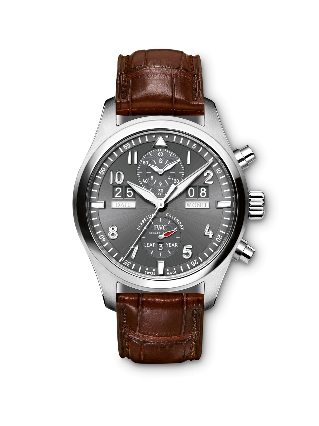 Три года назад, вместе с глобальным обновлением пилотской коллекции марки из Шаффхаузена, часовой мир впервые увидел модель Spitfire с фирменным вечным календарем, где дата и месяц отображаются в цифровой форме. Премьерная версия была выполнена в корпусе из розового золота, в то время как вариант 2015 года является более доступным из-за использования нержавеющей стали.