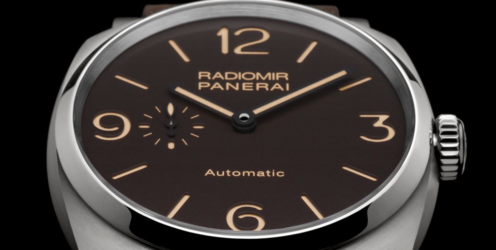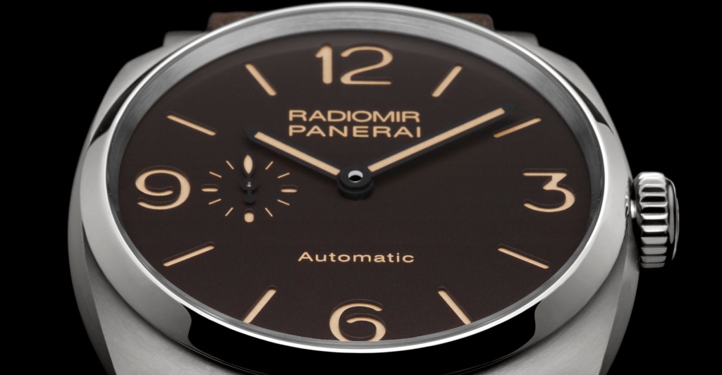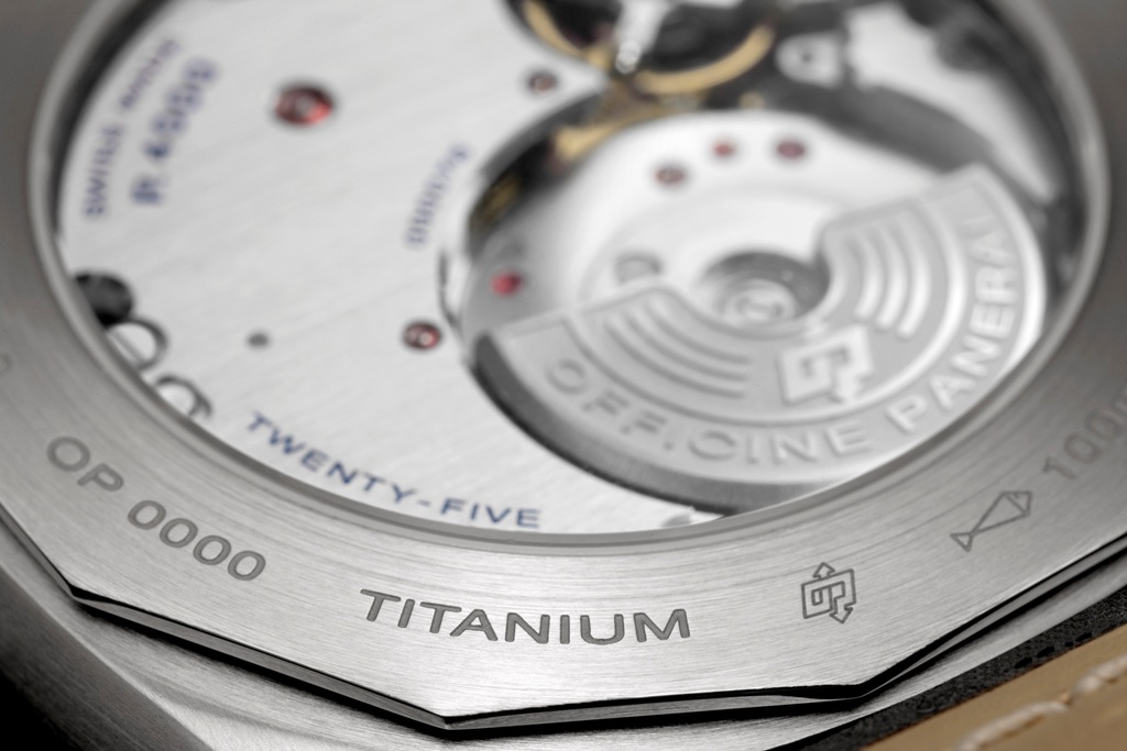 Первые часы — версия модели 3 Days Automatic в 45 мм корпусе Radiomir, материалом для которого послужил легкий и прочный титан. Точнее сказать, титановый сплав Grade 2 используется для сатинированной средней части корпуса и задней крышки, а титановый сплав Grade 5 — для полированного безеля и заводной коронки.