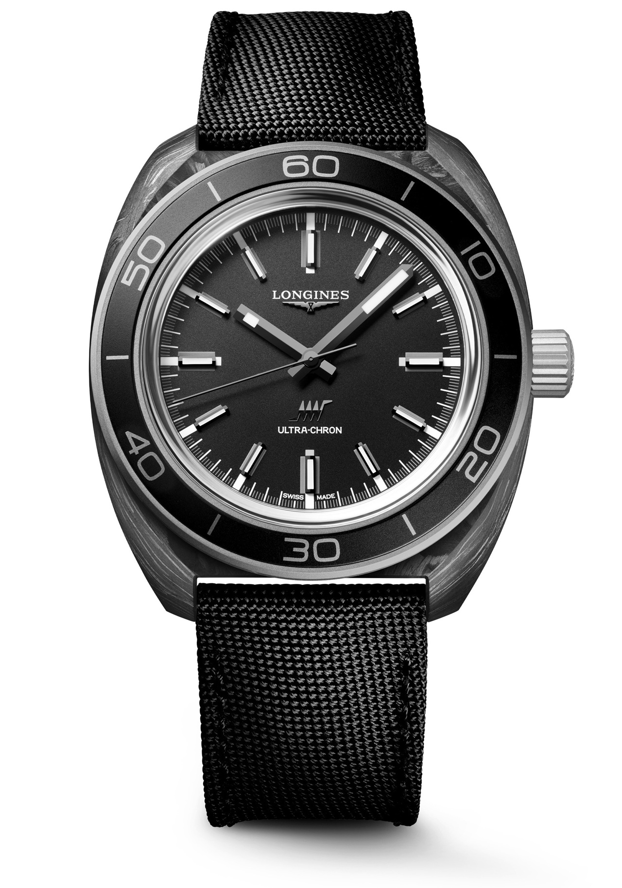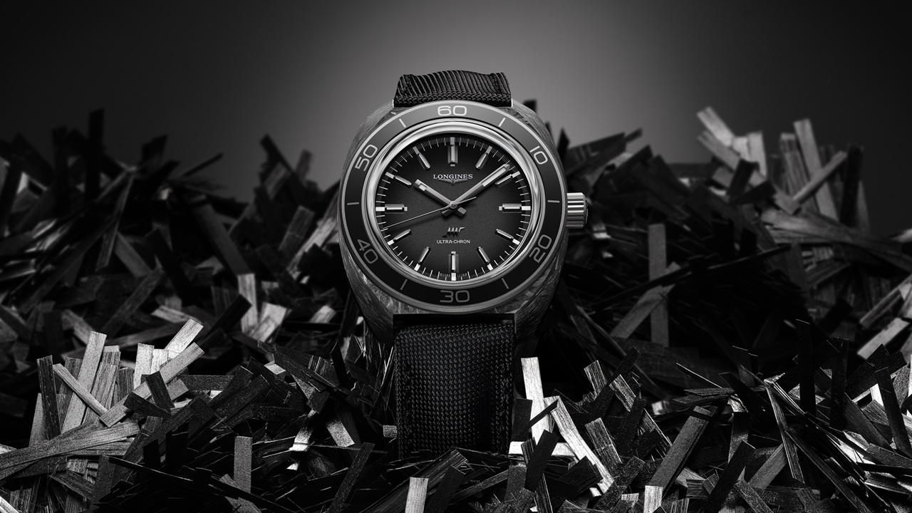 Первые в мире дайверские часы с высокочастотным механизмом — Longines Ultra-Chron Diver 1968 года — переизданные в 2022 году на основе близкого сходства с исторической моделью, получают еще одно современное воплощение, на этот раз в результате высокотехнологичной комбинации карбона и титана.