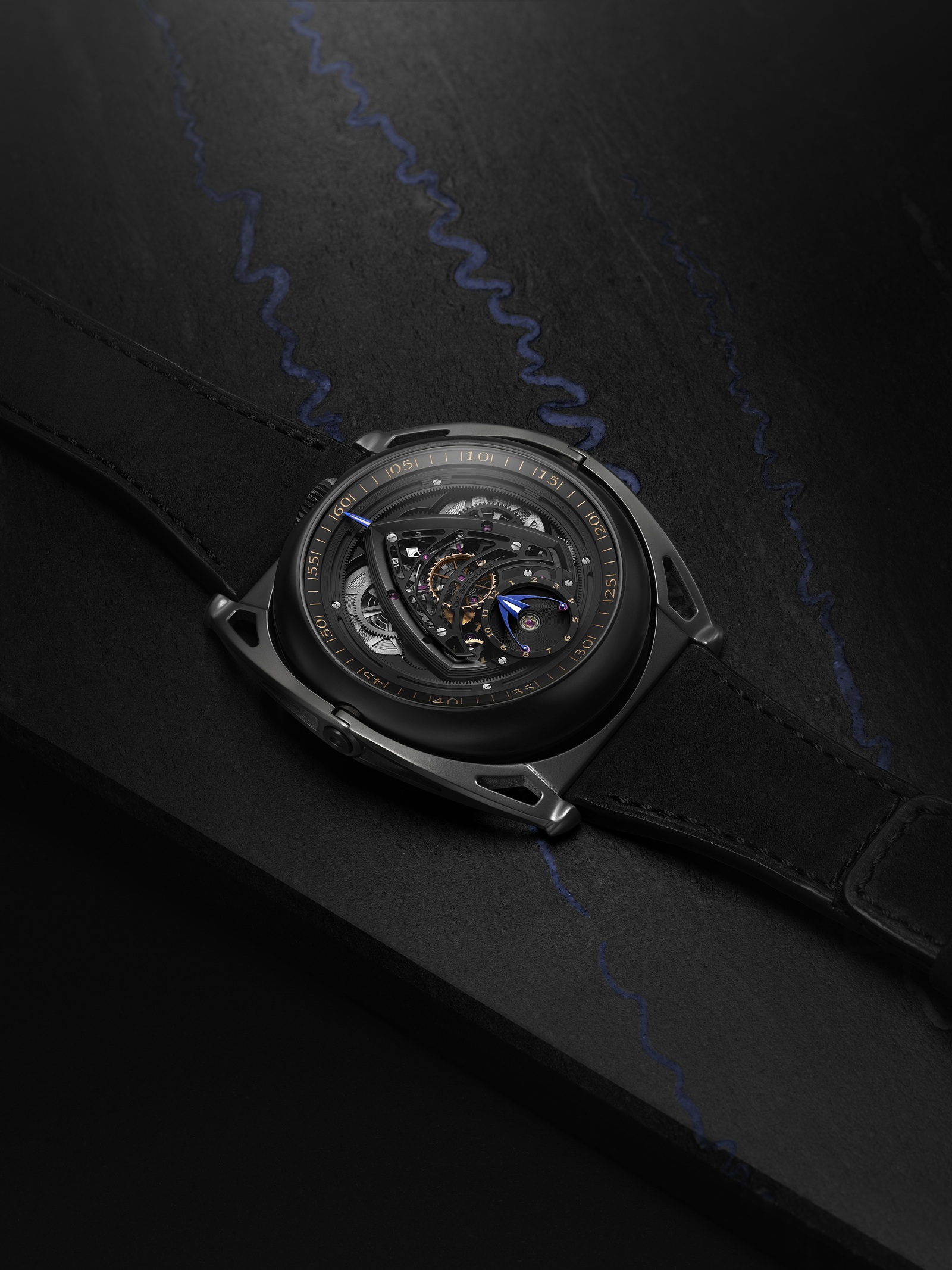 Изделие, тираж которого составит всего 10 экземпляров, поставляется на нубуковом ремешке черного цвета и в сопровождении классической застежки из титана и циркония.
