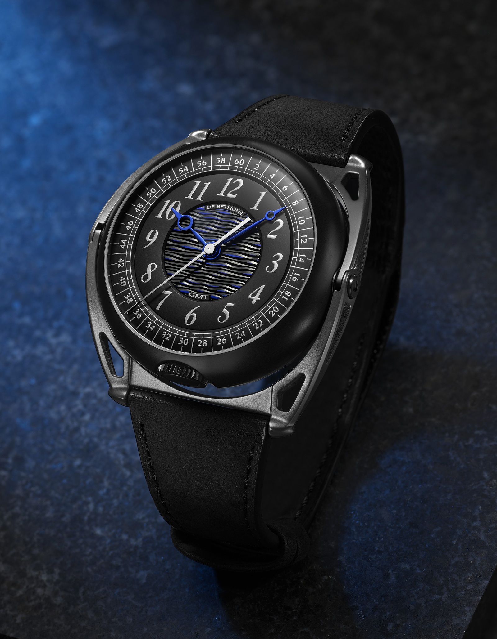 Уникальная модель Kind of Magic, созданная De Bethune совместно с Кари Вотилайненом для аукциона Only Watch 2021, легла в основу новых часов с функцией GMT, чей стиль, основанный на сочетании черного и золотистого цветов, отмечает также третий сезон сотрудничества часовой марки с американским художником и музыкальным продюсером Swiss Beatz.