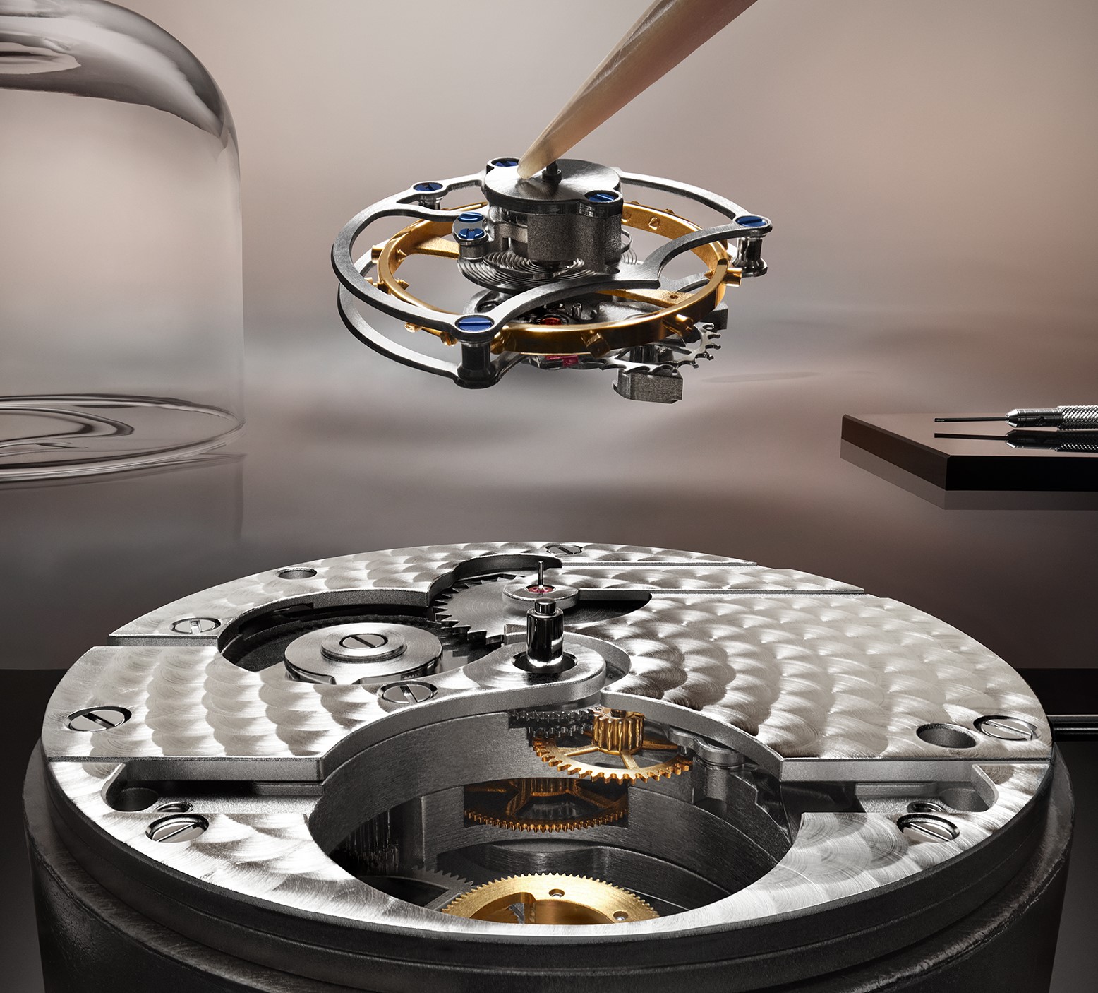 77 деталей общим весом менее полуграмма разместились в пределах титановой клети, входящей в состав мануфактурного автоматического калибра 978F с 4-герцовой колебательной системой и запасом хода в 48 часов, принадлежащего тому же семейству механизмов, что в 2009 году помогли марке занять первое место на Международном конкурсе хронометрии с часами Master Tourbillon.