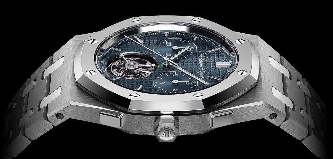 Новинка получила прописку в знаковом для бренда корпусе Royal Oak «Jumbo», толщина которого составляет 8.1 мм при диаметре в 39 мм (WR 20M), а комбинация материалов, задействованных для его создания, включает титан и Pd500 BMG — аморфный металлический сплав на основе палладия, из которого выполнены безель, задняя крышка, пушеры хронографа и встроенная в заводную коронку кнопка режима ее работы (установка времени или ручной завод).