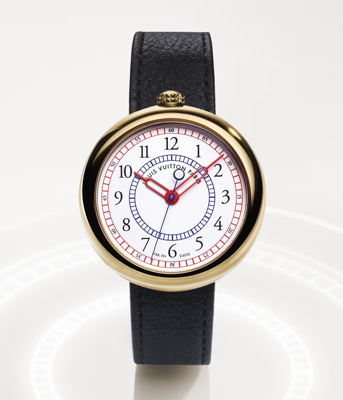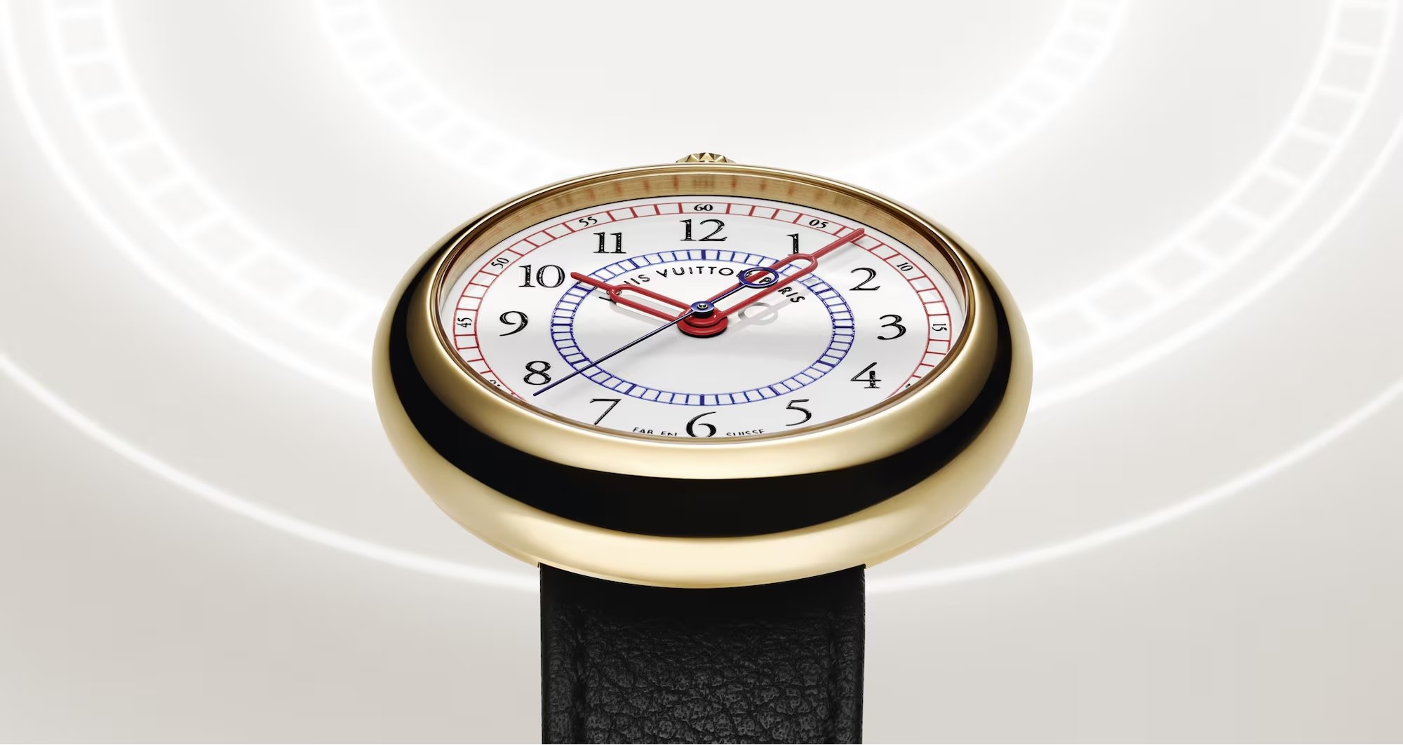 Часовое подразделение Louis Vuitton воздает должное стилю своих самых первых наручных часов — Monterey — выпущенных в 1988 году на базе обтекаемого, похожего на гальку золотого корпуса с верхним расположением заводной коронки и с кварцевым механизмом IWC внутри.