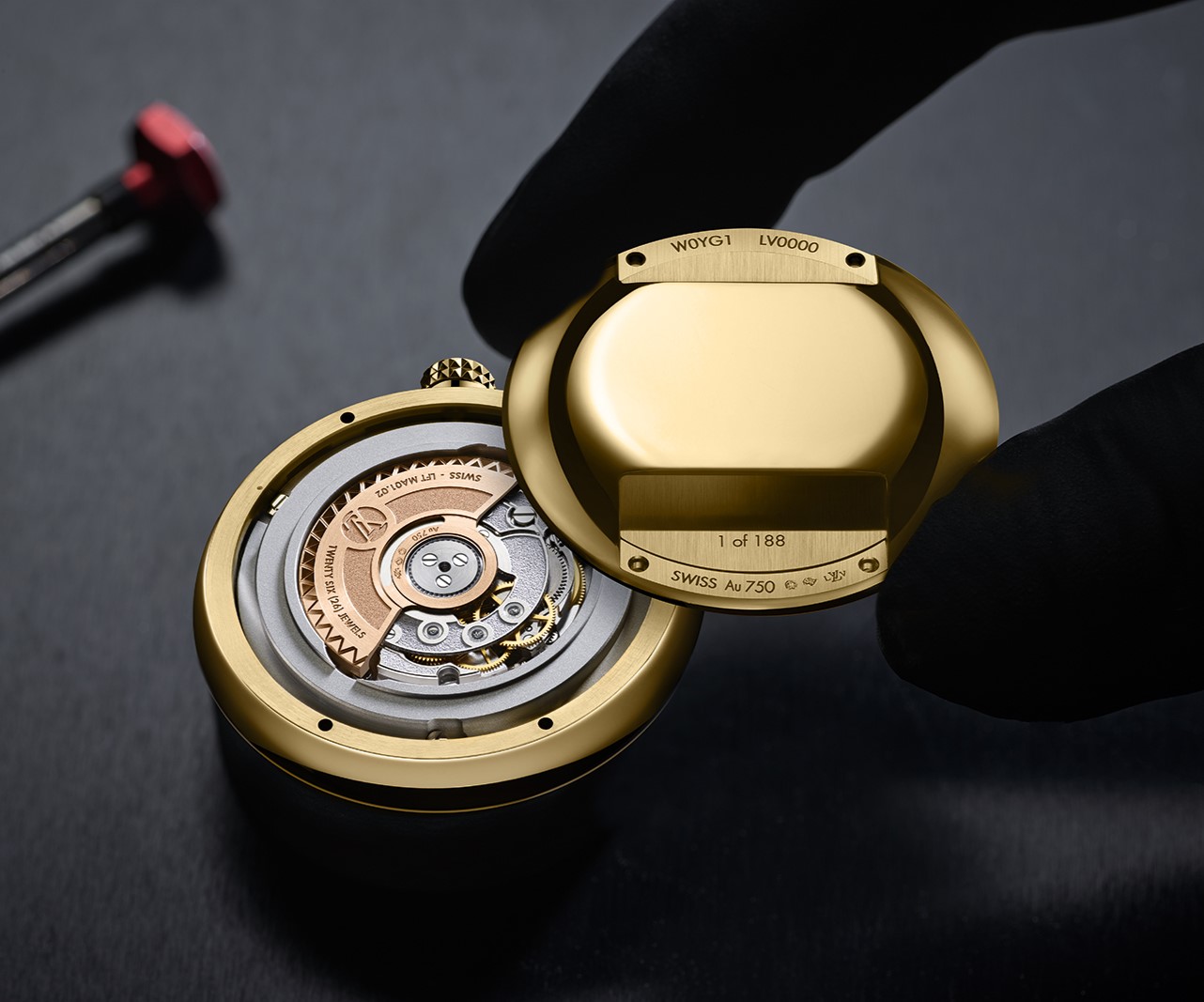 Внутри корпуса прячется компактный 23-миллиметровый автоматический калибр LFT MA01.02 с 4-герцовым осциллятором и запасом хода в 45 часов, созданный силами мануфактурного подразделения La Fabrique du Temps Louis Vuitton.
