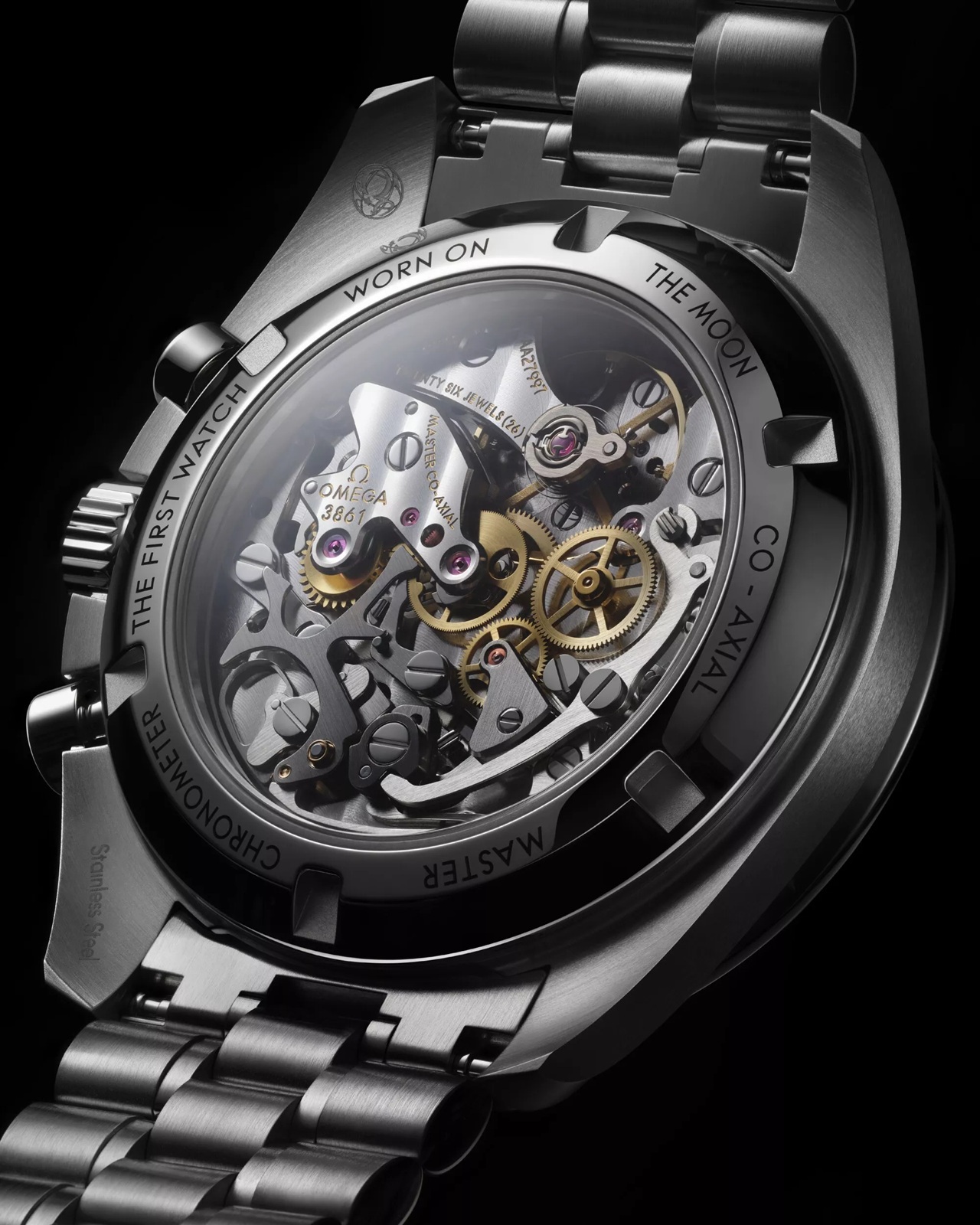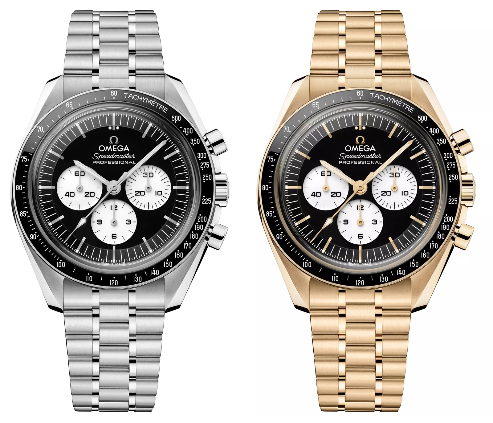 Современные часы Speedmaster Moonwatch, асимметричный дизайн которых унаследован у 4-го поколения этой легендарной модели, становятся богаче на вариант исполнения, где циферблат глубокого черного цвета предельно изящно сочетается с тремя белоснежными колодцами субдайлов.