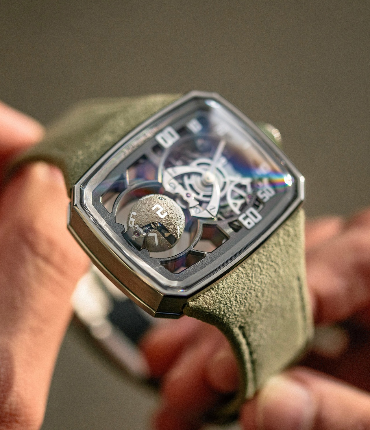 В комплект поставки Sphere Series 4 входит замшевый ремешок оливково-зеленого цвета и раскладывающаяся титановая застежка, а общий объем выпуска модели составит 28 единиц (Limited 1 of 28).