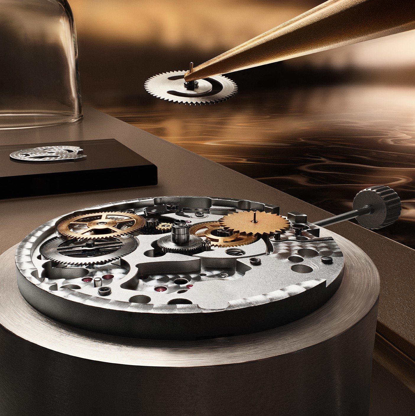 Здесь используется новый мануфактурный автоматический калибр 738 с 4-герцовым балансом и запасом хода в 70 часов, высота которого за счет дополнительной механической надстройки выросла до 4.97 мм по сравнению с 3.3 мм базового механизма 899, что является принадлежностью рассмотренной выше модели Master Control Chronometre Date.