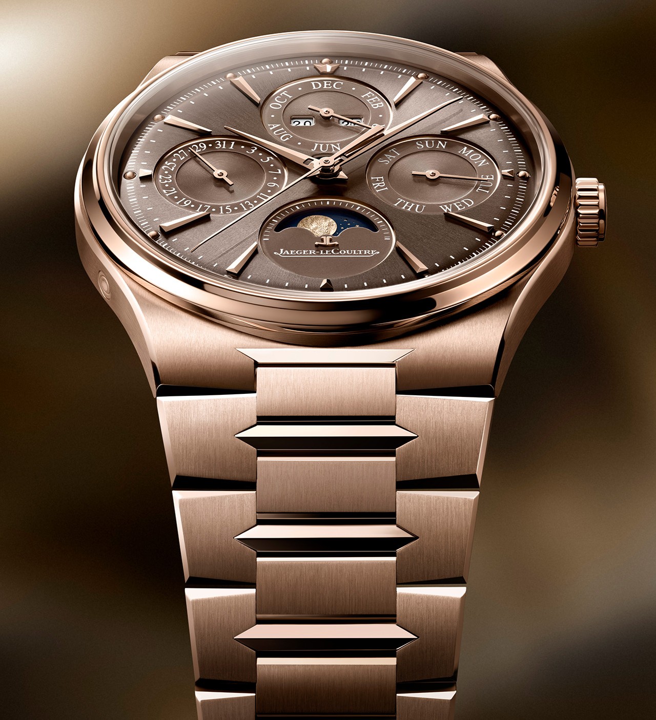 В свою очередь, теплый бронзовый оттенок циферблата второй версии этой модели находится в полной визуальной гармонии с золотистыми стрелками, накладными метками, а также с корпусом и браслетом часов, выполненными из 18-каратного розового золота.