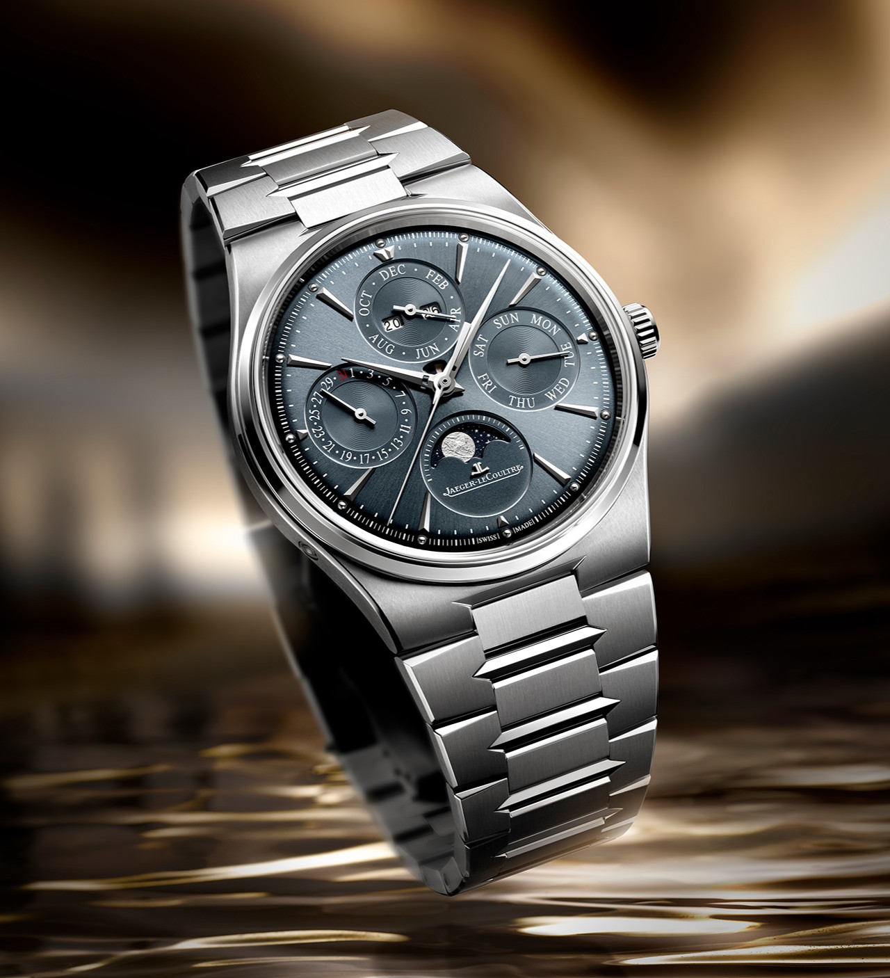 Наконец, модель Master Control Chronometre Perpetual Calendar, также доступная в стальной и золотой версии, располагает аналогичными с предыдущими часами параметрами корпуса несмотря на присутствие функционала вечного календаря, реализованного на основе мануфактурного автоматического калибра 868 с тонким профилем (4.72 мм), 4-герцовым балансом и запасом хода в 70 часов.