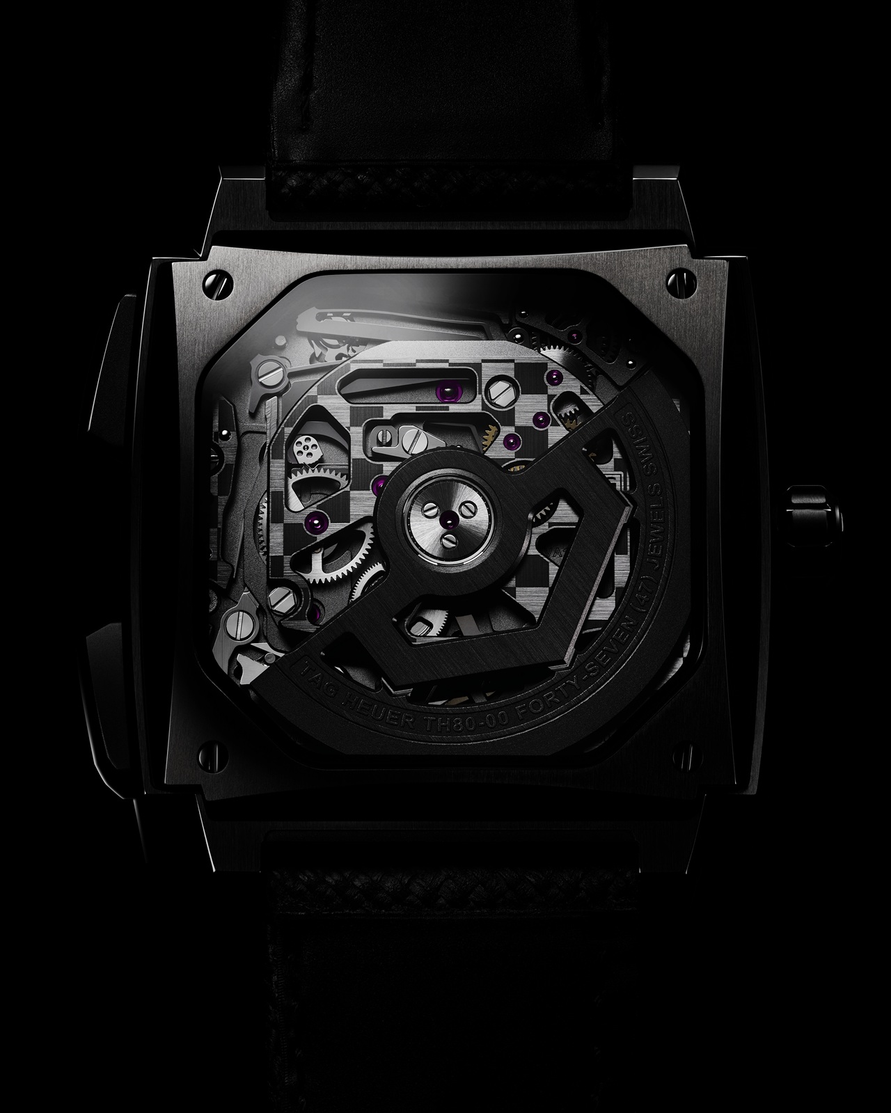 Новую форму получила и задняя крышка корпуса часов, которую теперь сопровождают полукруглые боковые скосы и максимально допустимое в диаметре сапфировое стекло, позволяющее во всей красе оценить мануфактурный автоматический калибр TH20-11 с 4-герцовым балансом и запасом хода в 80 часов, созданный на основе интегрального хронографа TH20-00 с колонным колесом и вертикальной муфтой.