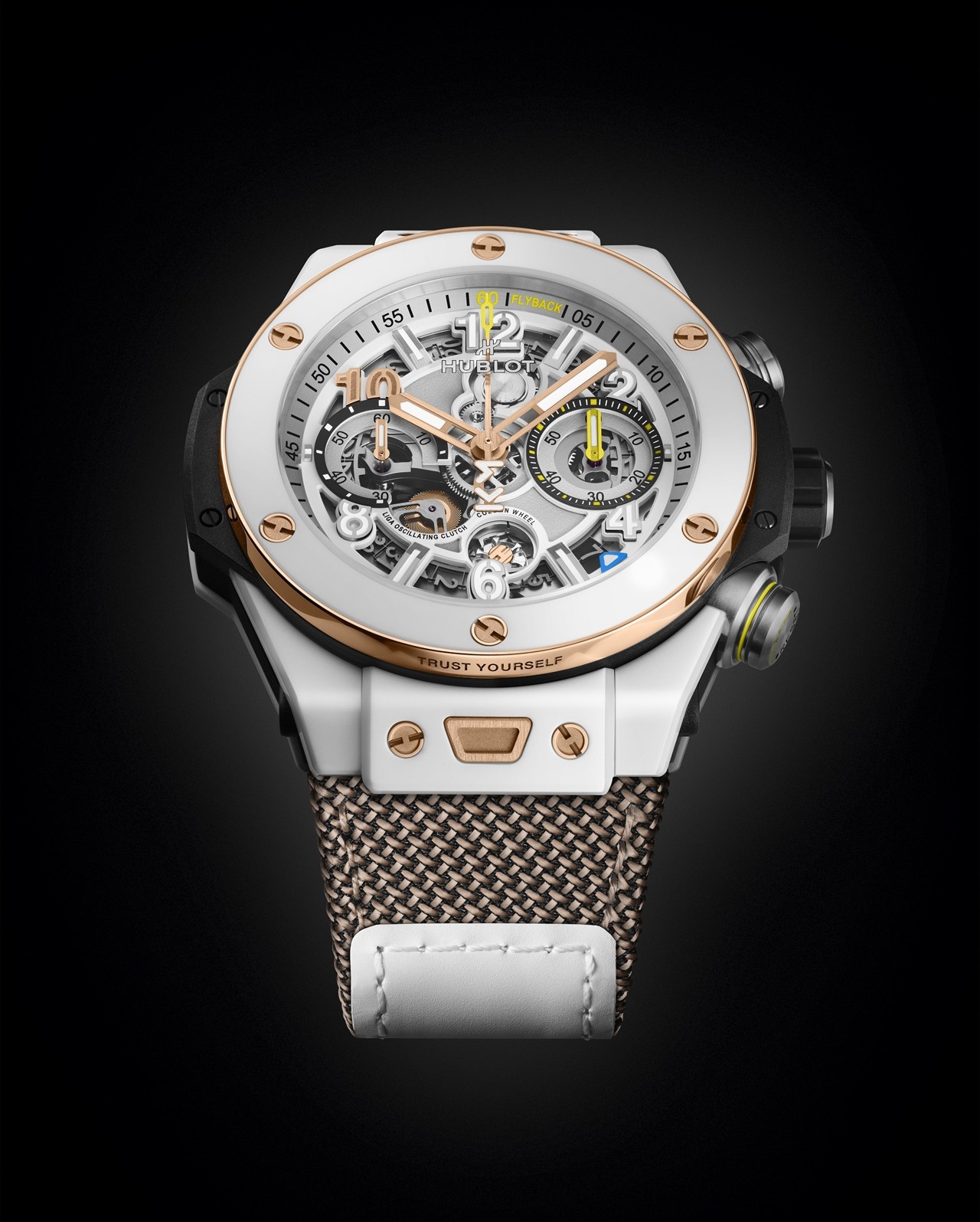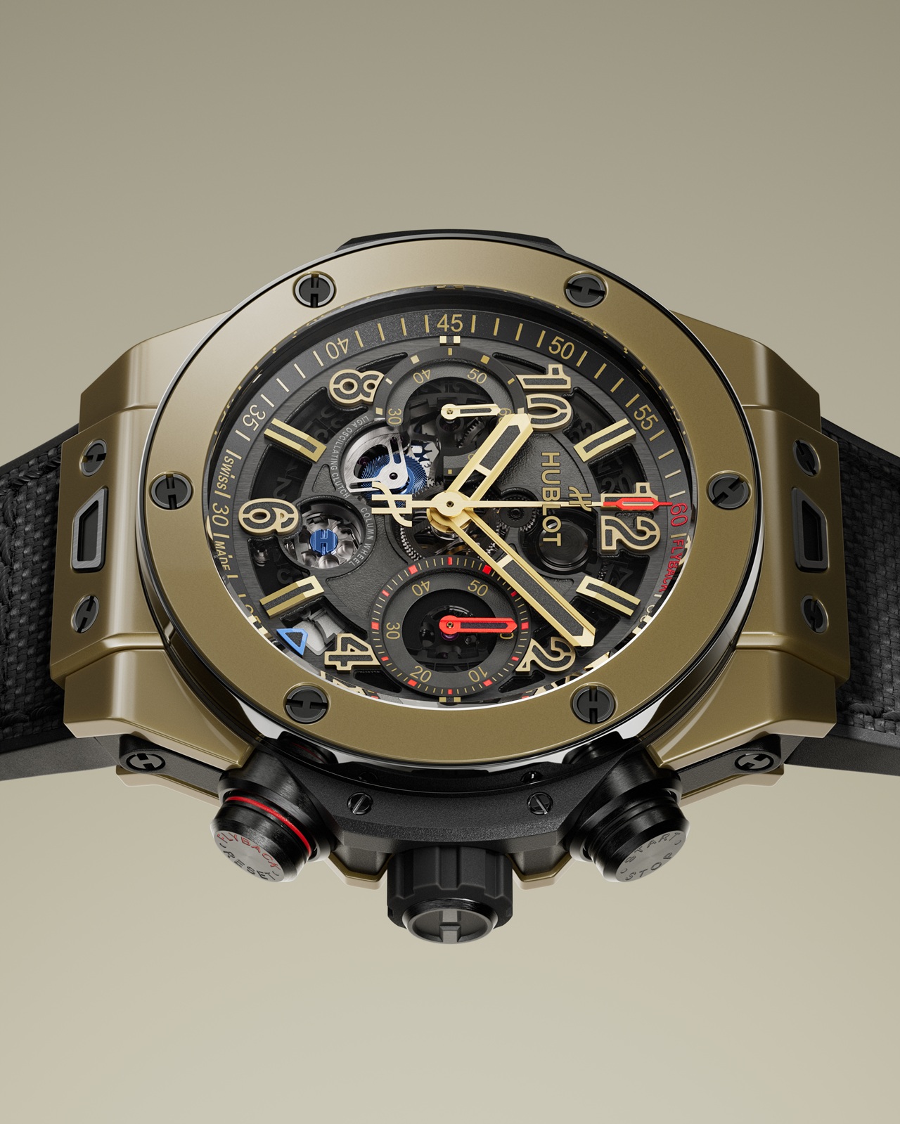 Наконец, исполнение Big Bang Reloaded Magic Gold возводит во главу угла фирменное 18-каратное золото Magic Gold, представленное 15 лет назад в качестве второго по твердости после алмаза материала, созданного в сотрудничестве с лабораторией EPFL на основе золота и керамики.