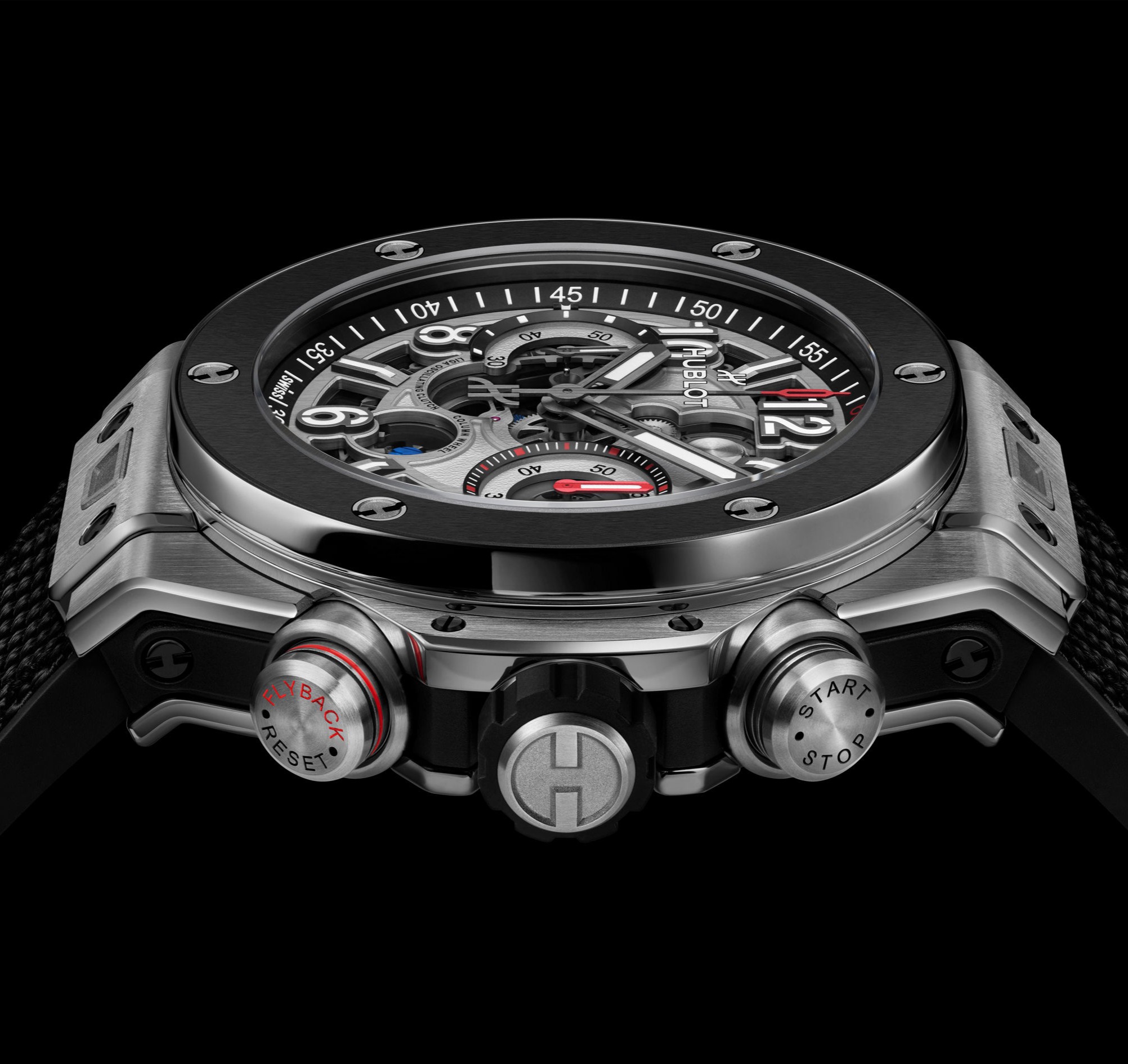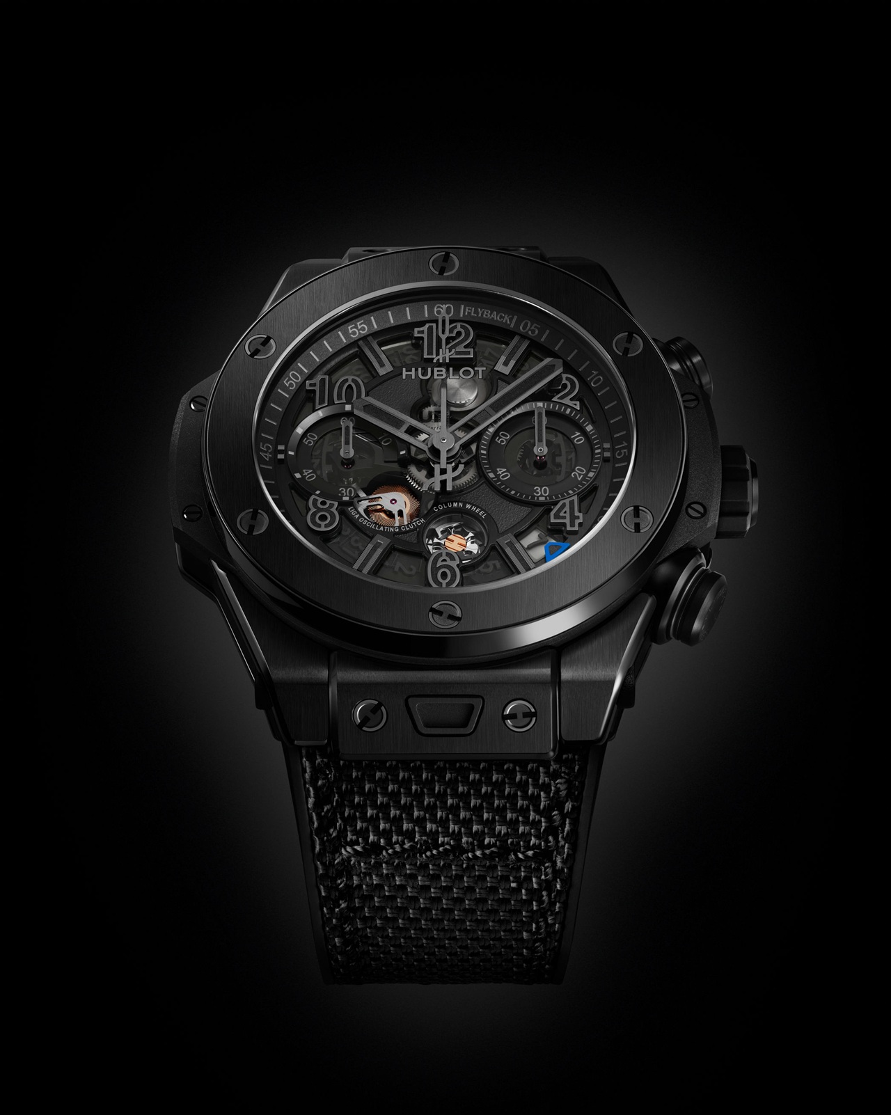 Полностью черная керамическая версия Big Bang Reloaded All Black отдает дань уважения 20-летней концепции All Black, которую в данной интерпретации нарушают разве что синий маркер даты в положении «4.30», а также анодированные в золотистый цвет винт колонного колеса и двойное колесо горизонтальной передачи хронографа, использующее для своего производства прецизионную технологию LiGA.